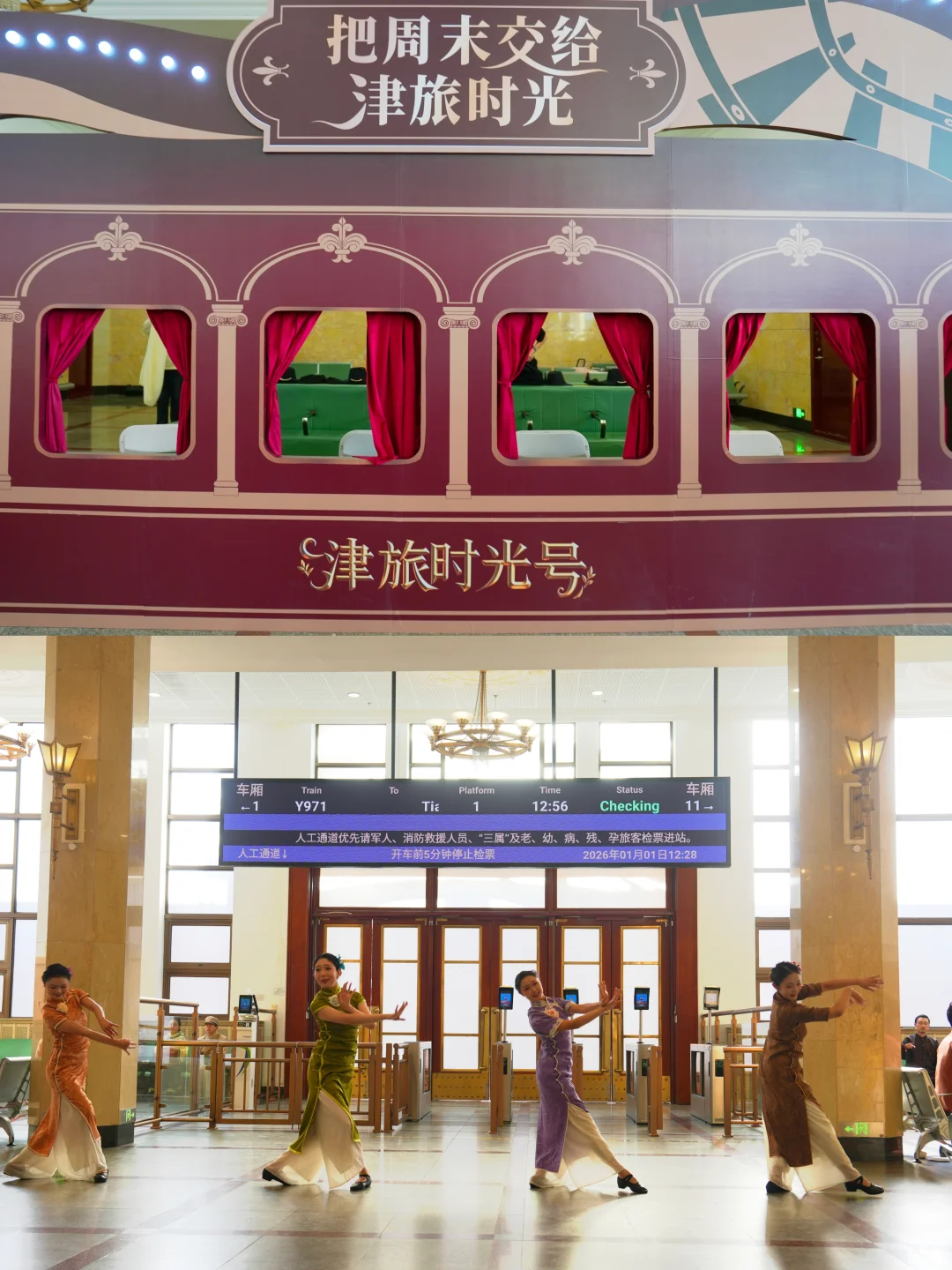 NPC快闪舞蹈超有氛围,打卡墙随手拍都是大片,候车时还有精彩演艺节目加持💖等待发车的时光都超治愈~