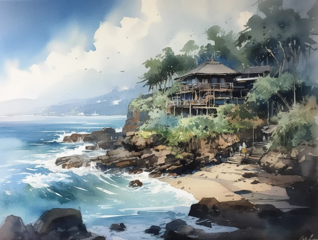 水彩 巴厘岛