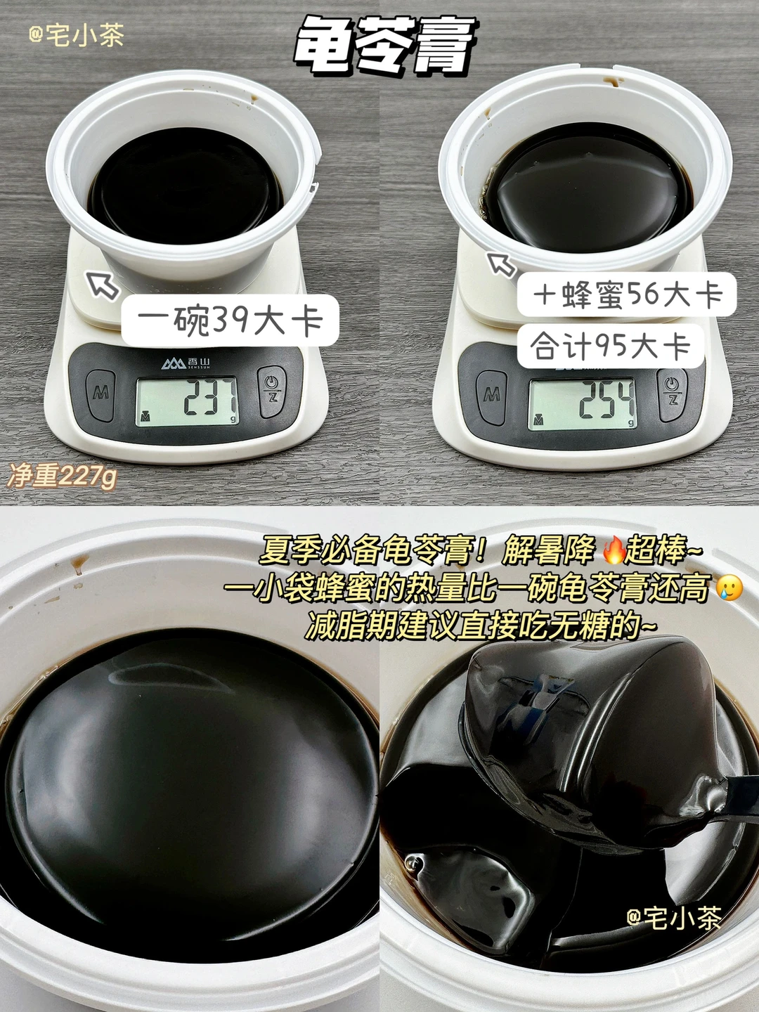 ➡️龟苓膏:一碗净重227g,39大卡(加蜂蜜一碗95大卡)