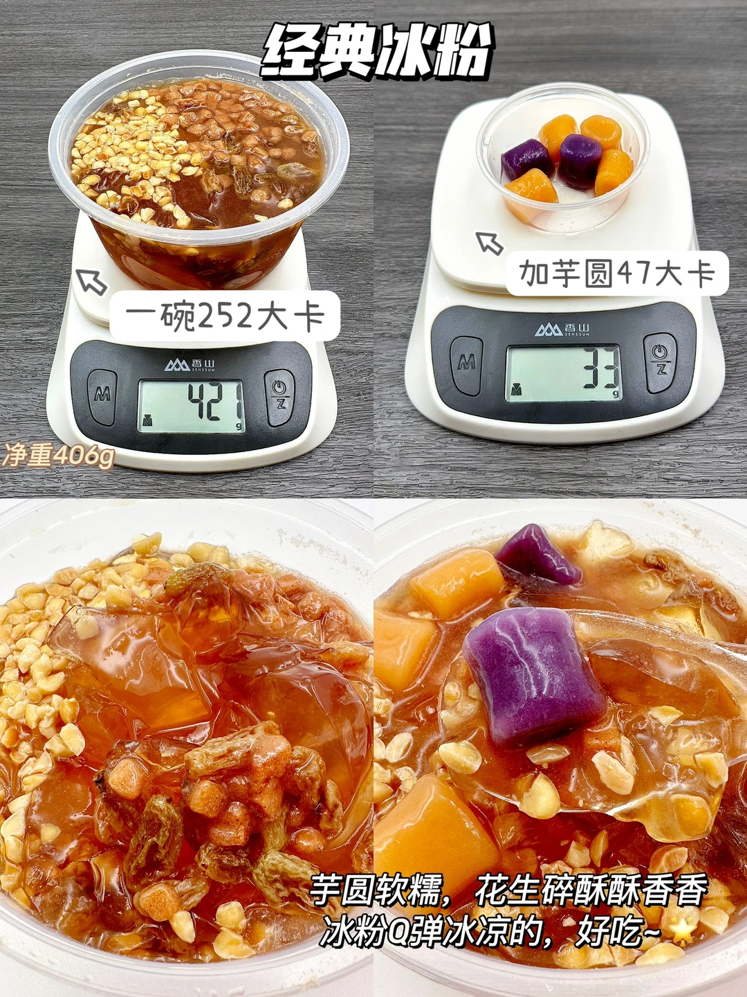 ➡️经典冰粉:一碗净重406g,252大卡