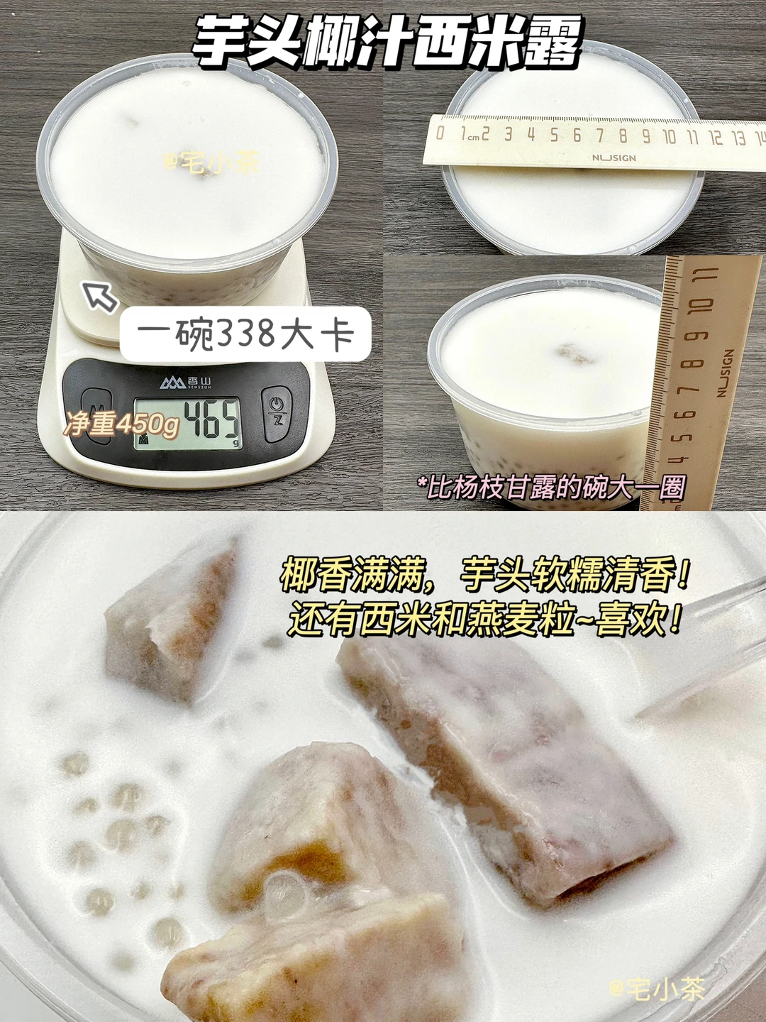 ➡️芋头椰汁西米露:一碗净重450g,338大卡