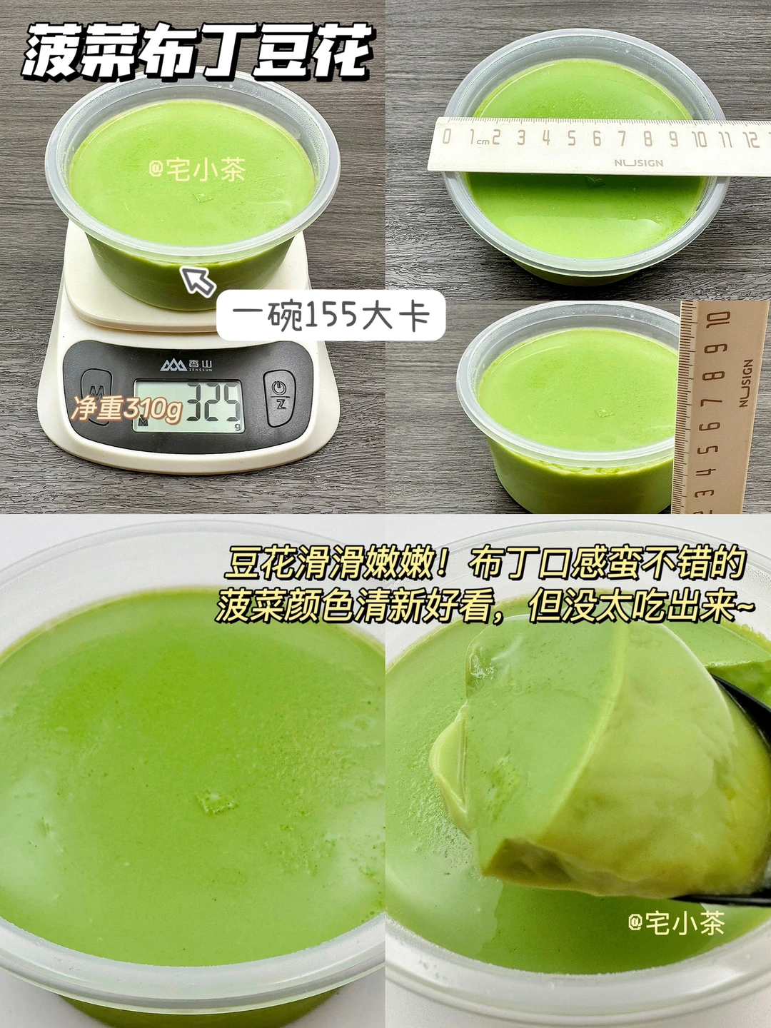 ➡️菠菜布丁豆花:一碗净重310g,155大卡