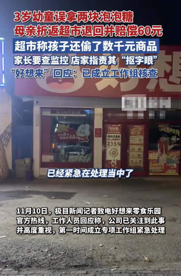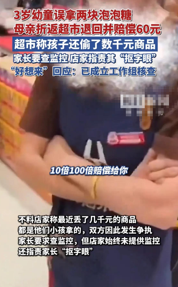3 岁娃拿 6 元泡泡糖,认错赔 60 元,却被 “好想来” 逼认 6000 元偷窃?