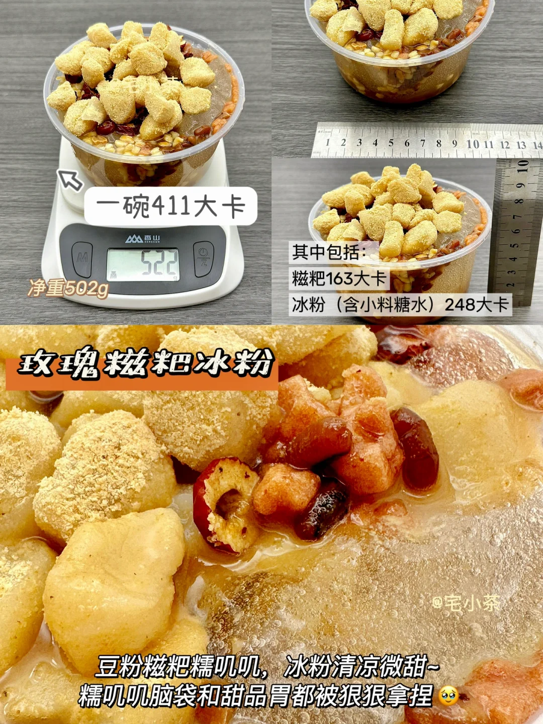 ➡️玫瑰糍粑冰粉:一碗净重502g,411大卡
