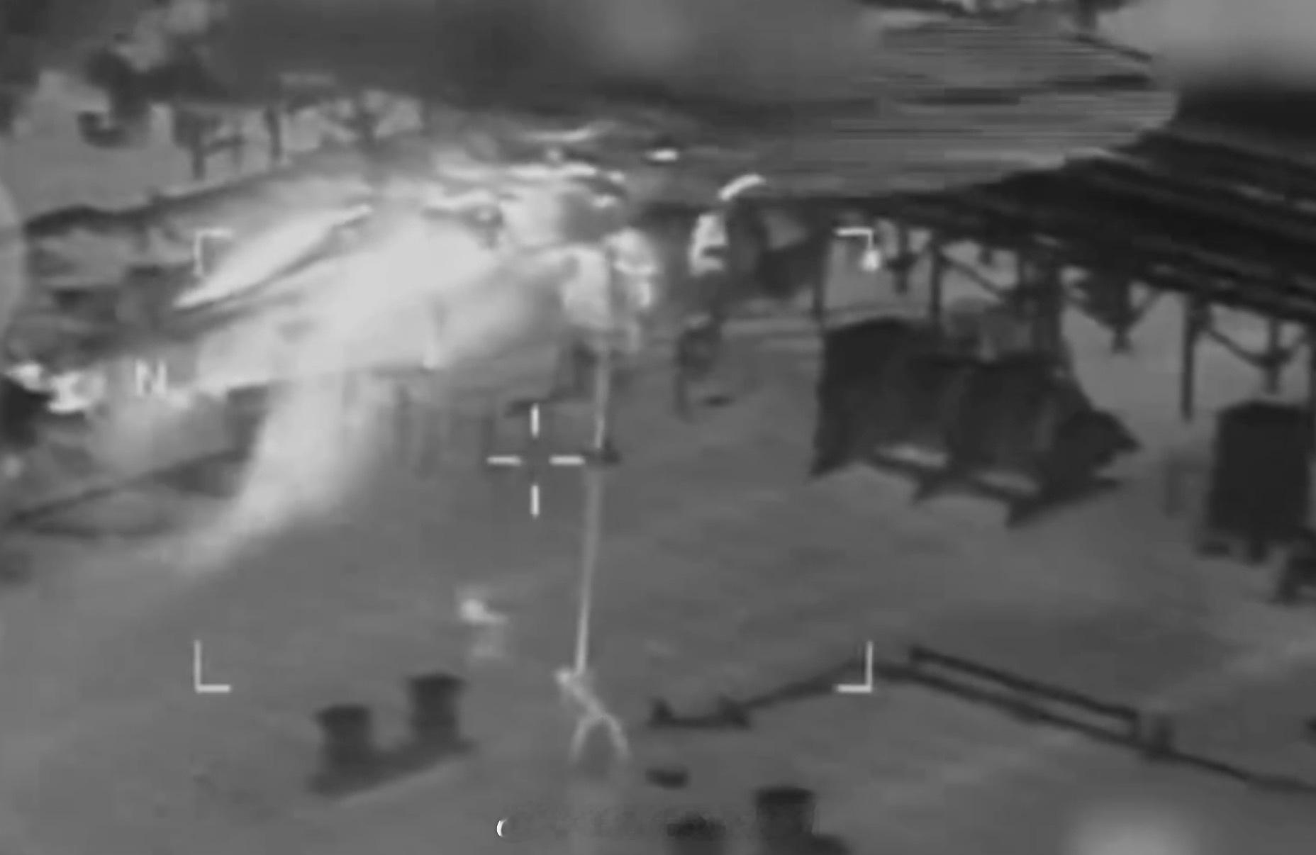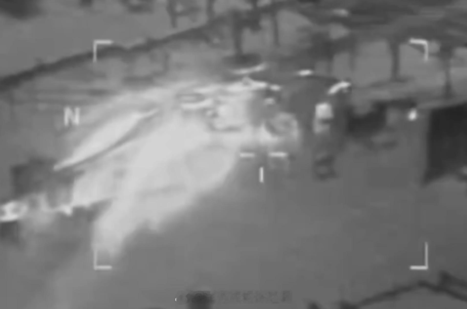 运送特战队员登船扣押的美军直升机,从热成像视角看发动机喷出的气流具有强烈的热信号