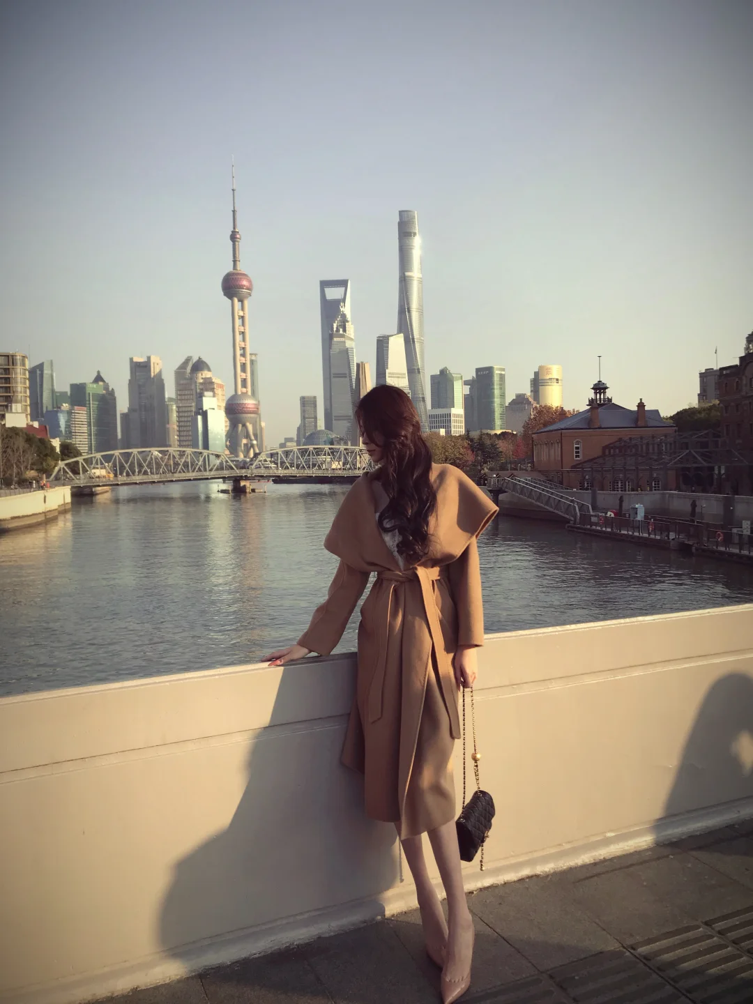 乍浦路桥随手一拍都好有氛围 穿上驼色大衣完全高干文女主