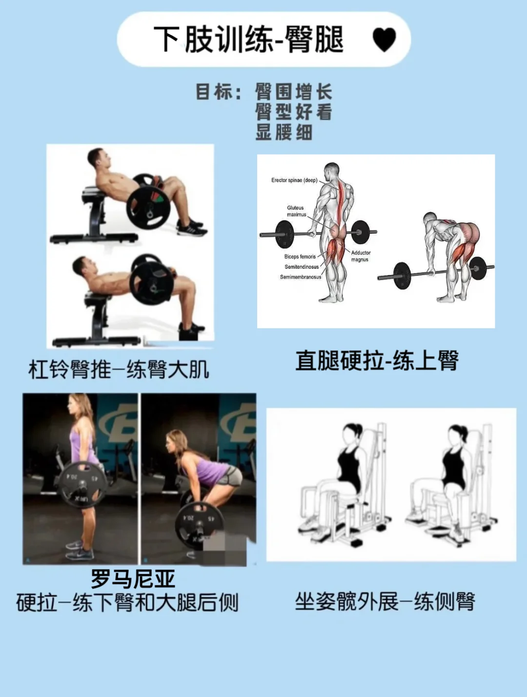 ✅新手小白建议先跟练,注意收紧腹部集中臀肌发力,动作要点掌握了再逐渐上重量,前期不需要尝试花里胡哨的,能把深蹲臀推硬拉掌握到位就很棒啦~