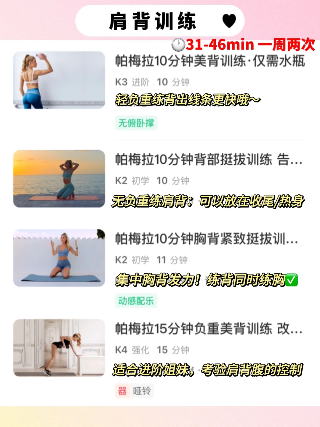 ✨我审美中的肩背是:良好的体态+肩背轻线条,所以除了体态跟练我每周还会进行一次力量训练(一般选受力明显重量即可)