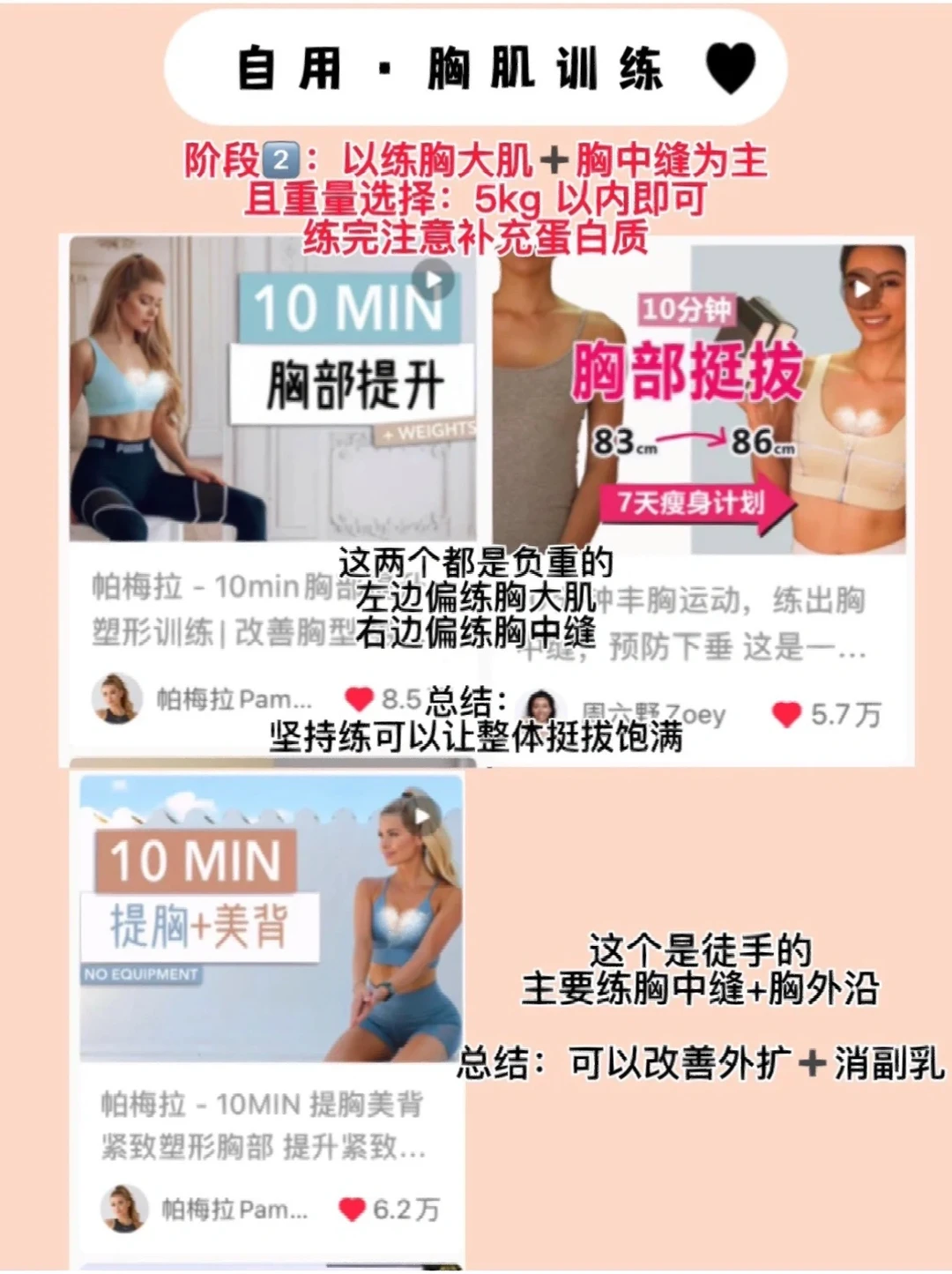 ✅并且会特别注意胸大肌、胸中缝和胸外沿的训练(想一想夏天穿吊带是不是这些地方lou较多?)