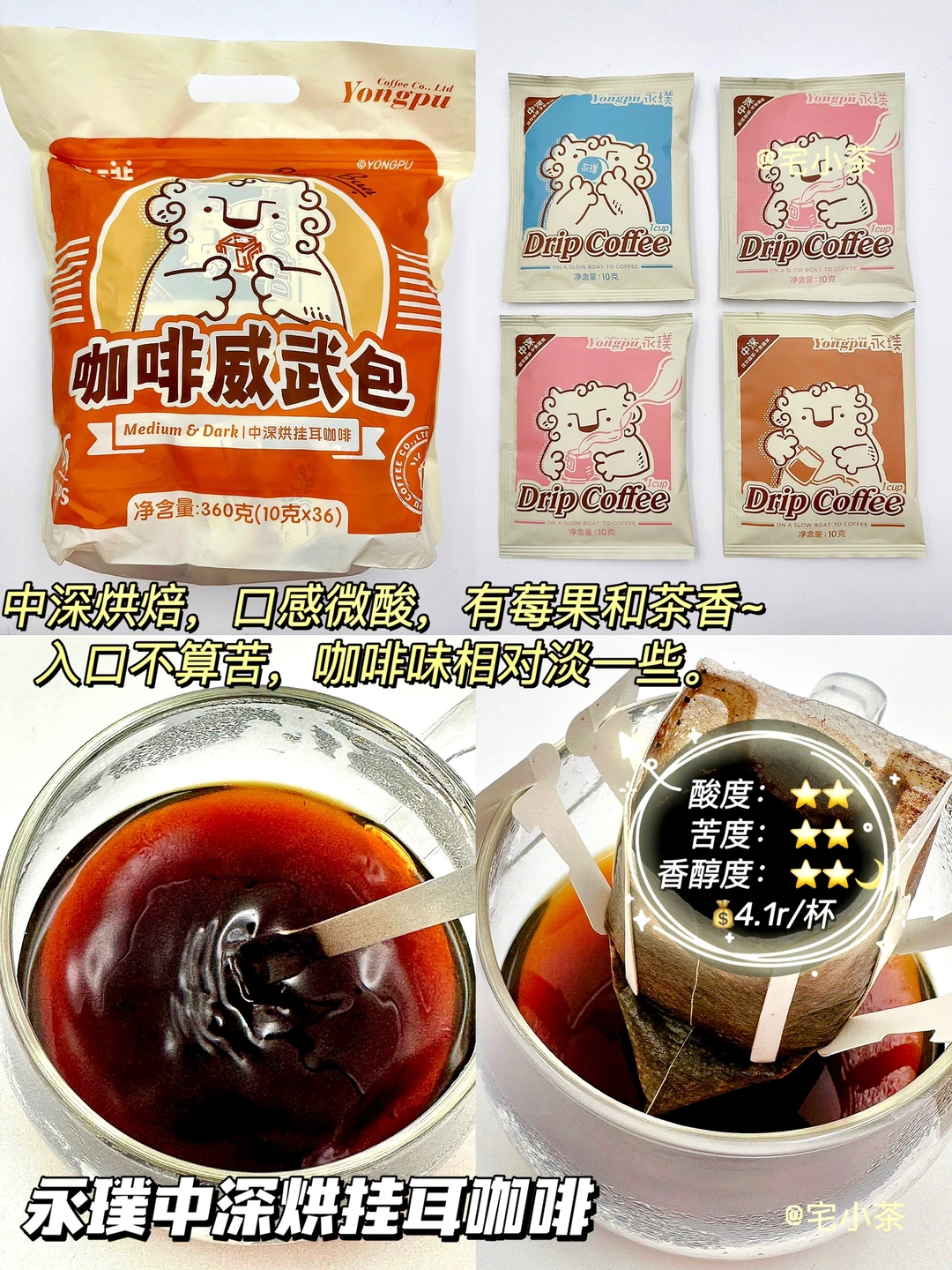 我买的混合装,包括中深烘焙和深烘两种。