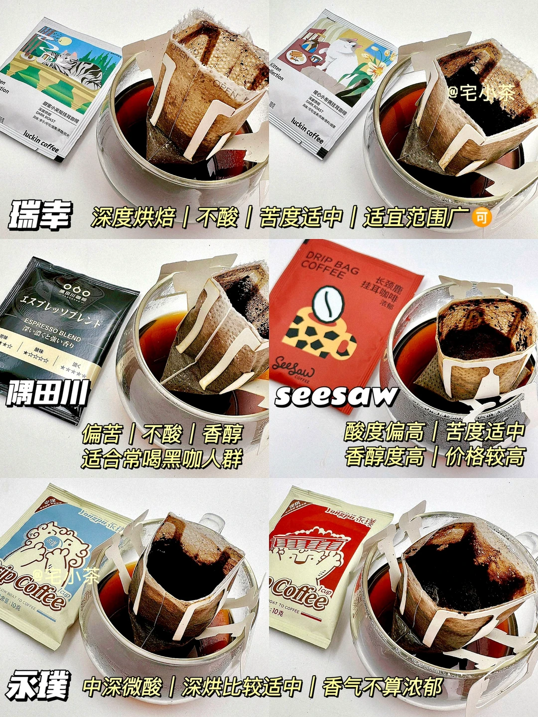 ✔️苦度(低->高):永璞<瑞幸≈seesaw长颈鹿<隅田川