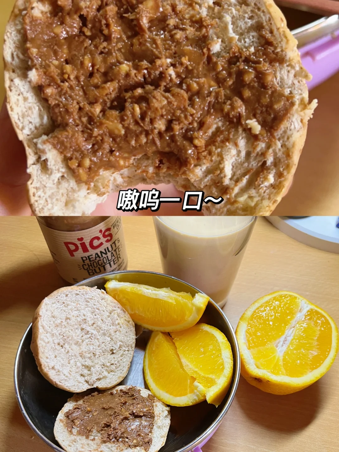 早餐🥣:全麦面包抹花生酱+一个🥚+一杯咖啡牛奶(早餐不怎么爱吃油条或者包子的姐妹一定要试试:全麦面包配花生酱,真的好香😋。之前抱着试一试心态选择的海盐口味,但是试过就一整个爱住了!所以巧克力口味刚一出我就赶紧囤了一罐,哈哈哈我真的很爱吃🤣)