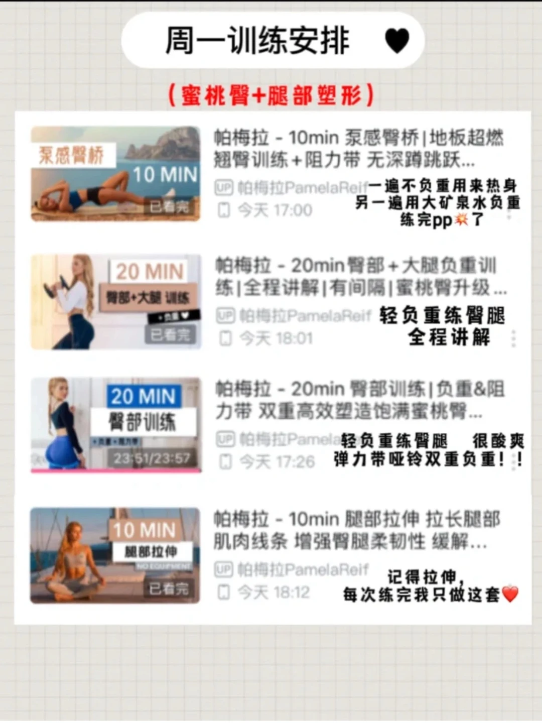 ⚠️所以我练了两遍:一遍不负重用来热身,另一遍负重,练完pp真的很酸!