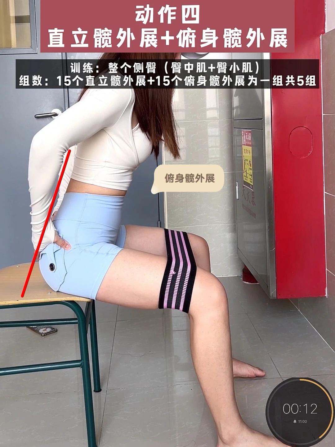 4️⃣.直立髋外展➕俯身髋外展组合-练整个侧臀