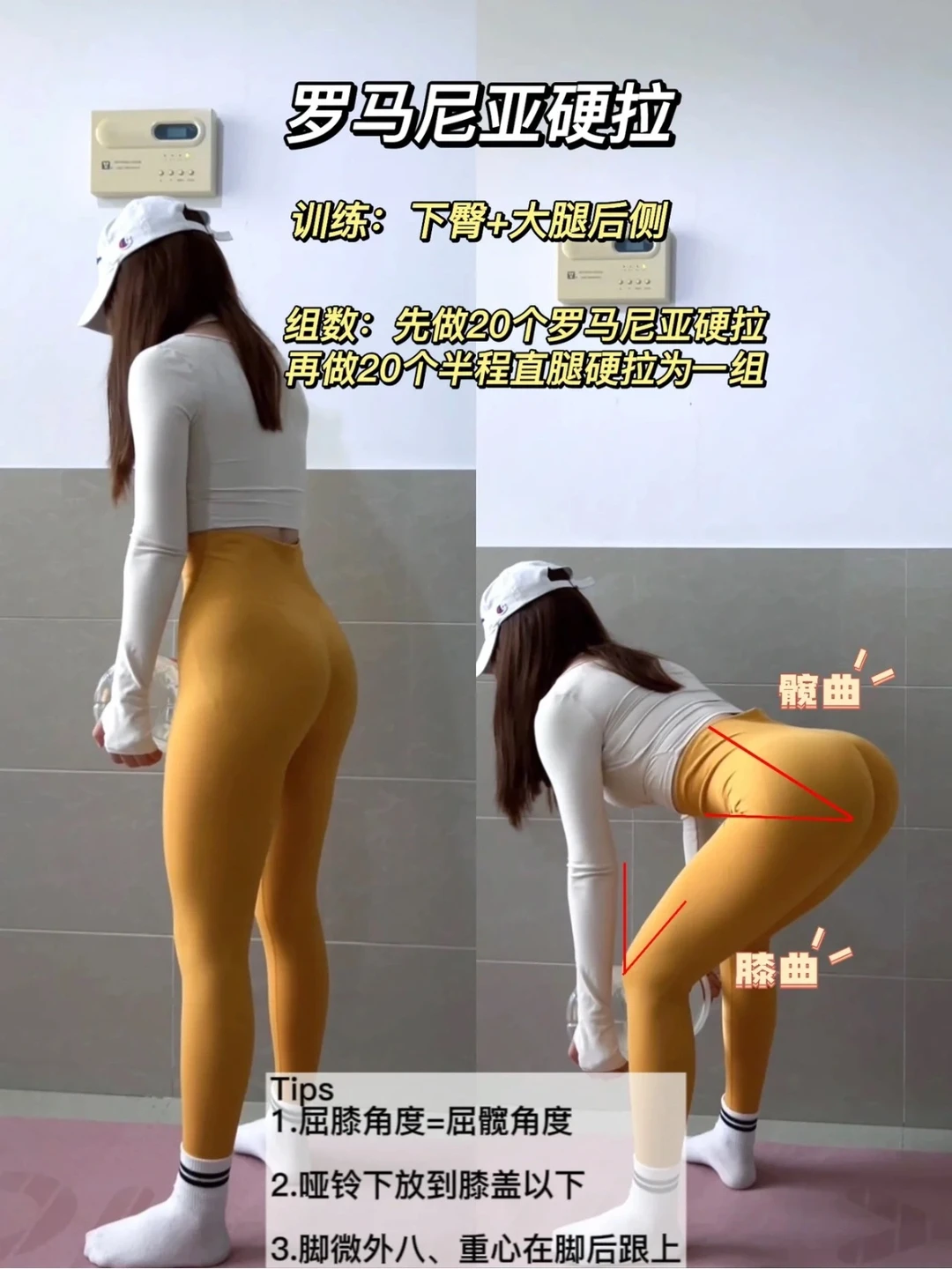 3️⃣.罗马尼亚硬拉+半程直腿硬拉的组合-练大腿后侧+整个臀+后背