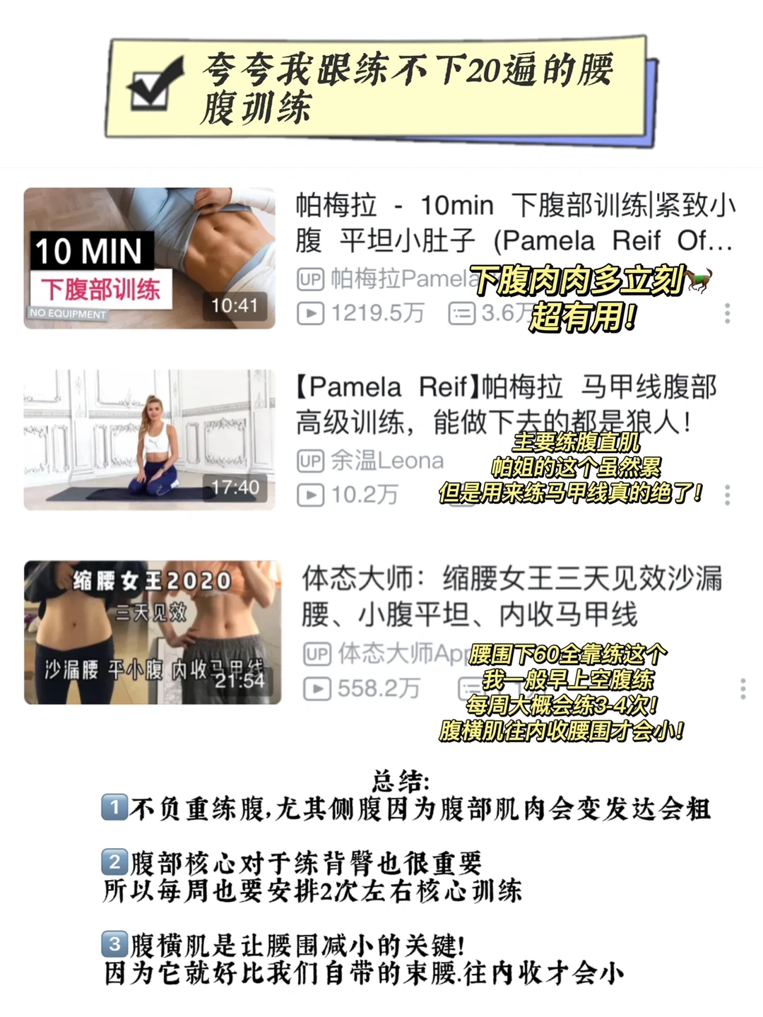 特别是侧卷腹,罗马椅负重侧屈我几乎不做(因为这些都是练侧腹的,练多了就不会有沙漏腰相反会get平板腰)
