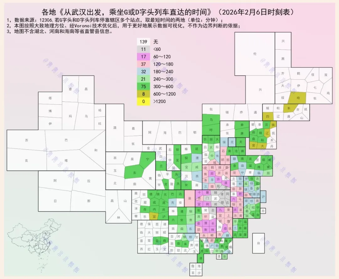 如果从祖国的另一个中心地区武汉出发到全国各地,乘坐G字头或D字头高速列车,需要多久能到达?