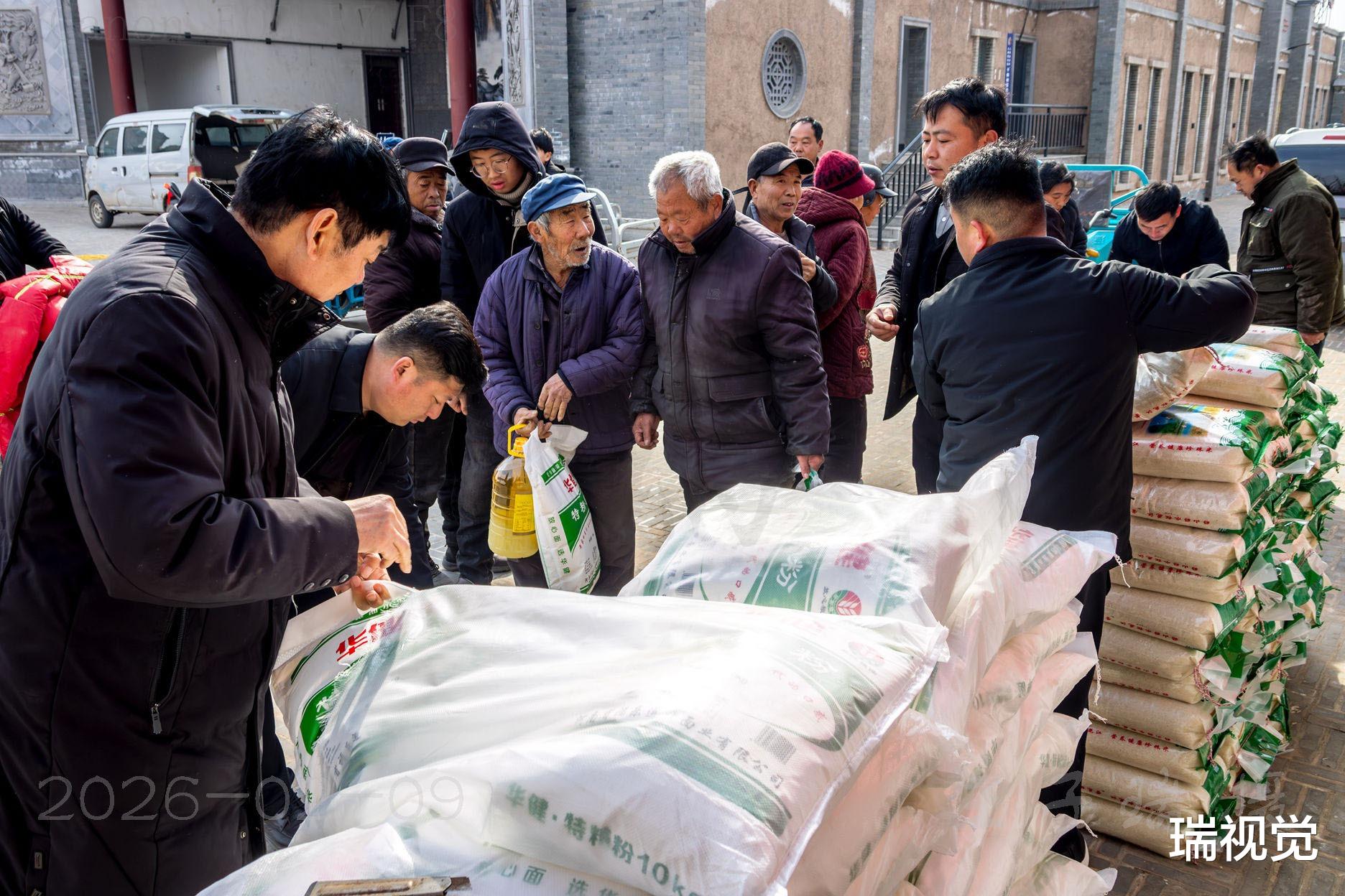 2026年2月9日(腊月廿二),河南省安阳市滑县上官镇干柳树后街村,爱心人士向80岁以上的老人和残疾人、五保户发放米、面、油和春联等过年物品。