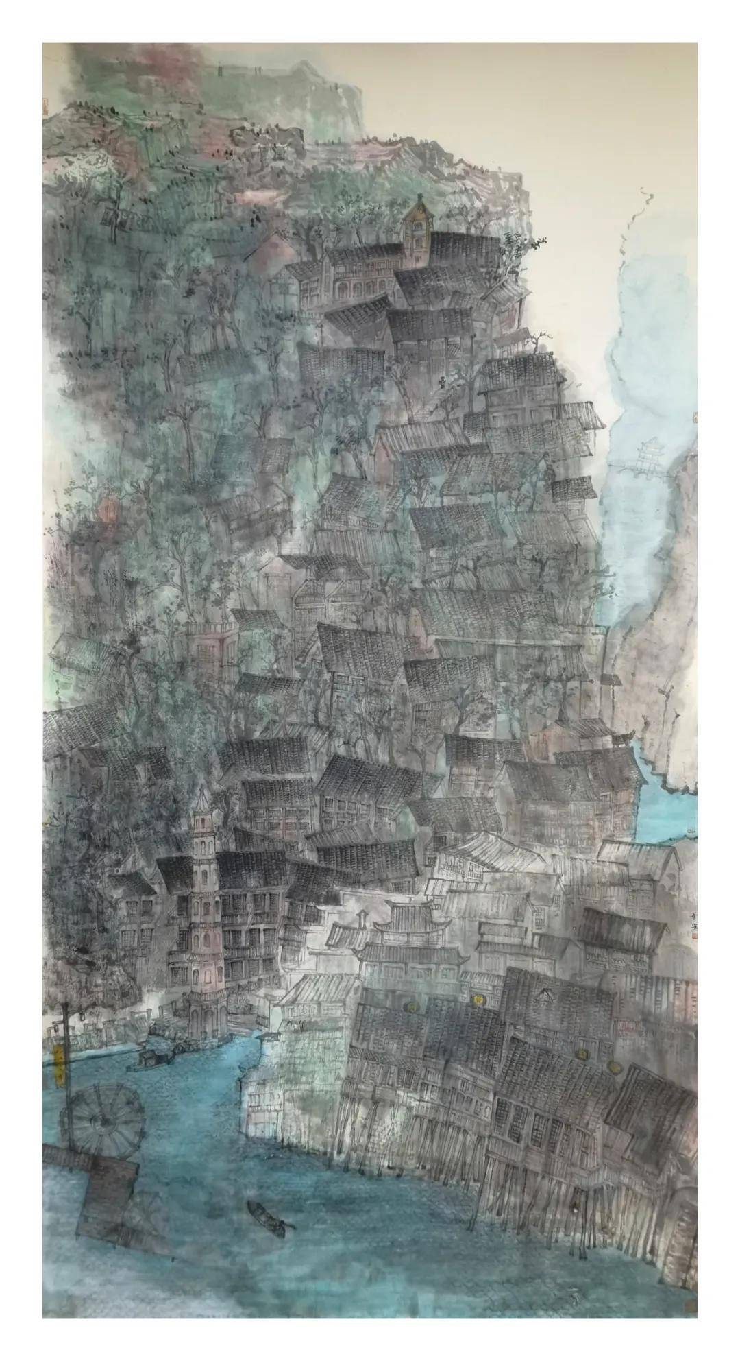魏华安 山城辉映 246x123cm 中国画