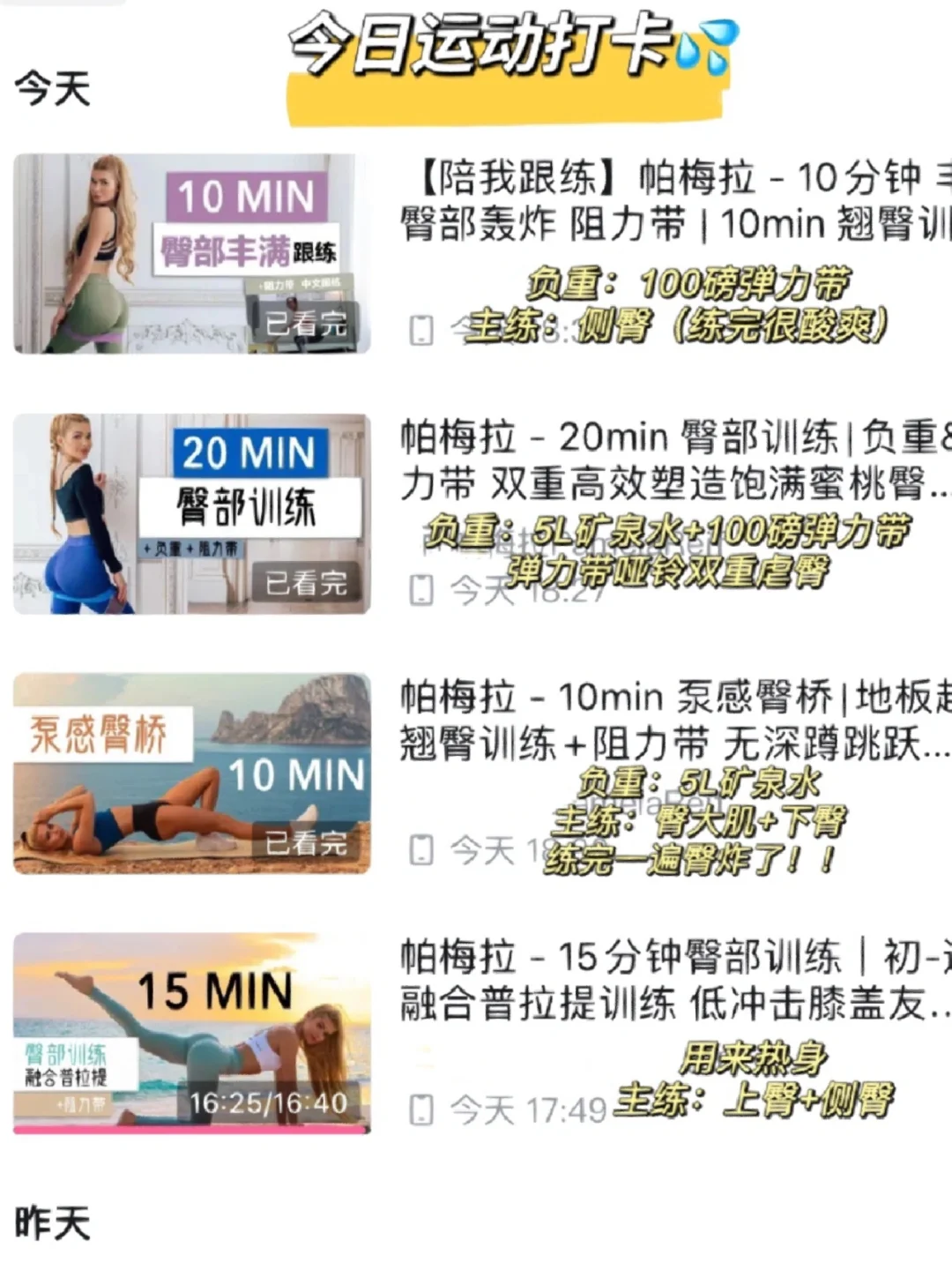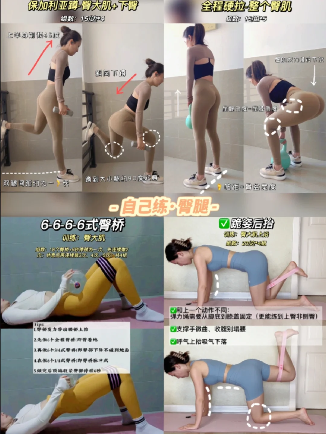 💕按照以上顺序一周至少安排2次臀肌训练,期待半年后的你练出好看的臀型~