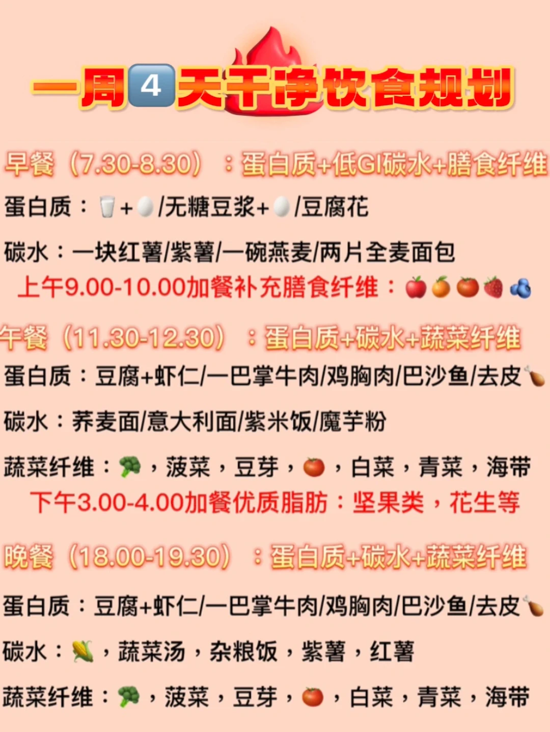 ✨即一周4天保持轻油盐的饮食习惯(多吃蔬菜蛋白质+干净碳水)