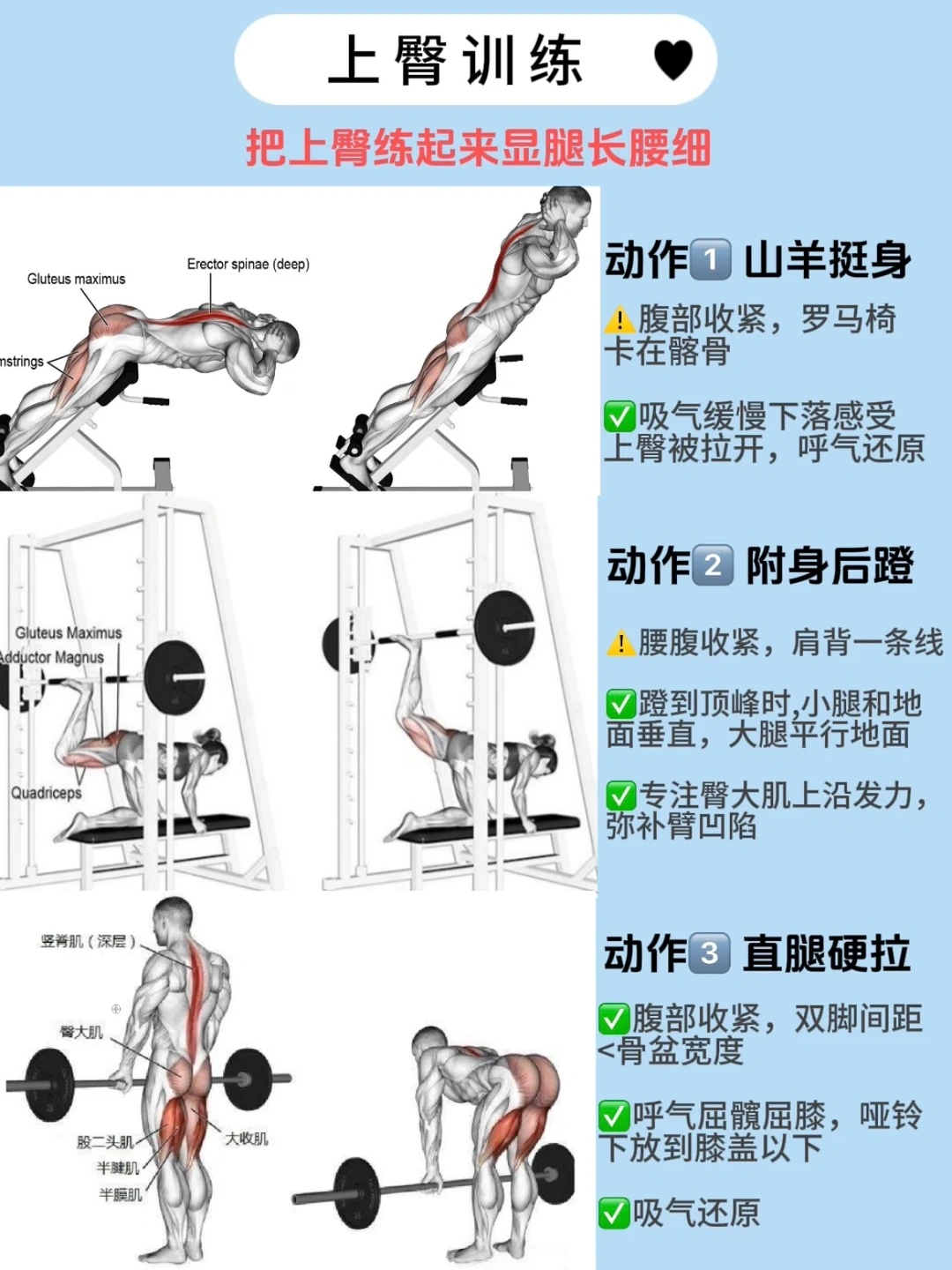 ✅比如:直腿硬拉/单腿硬拉,俯卧后蹬/山羊挺身(4选2,见图3)
