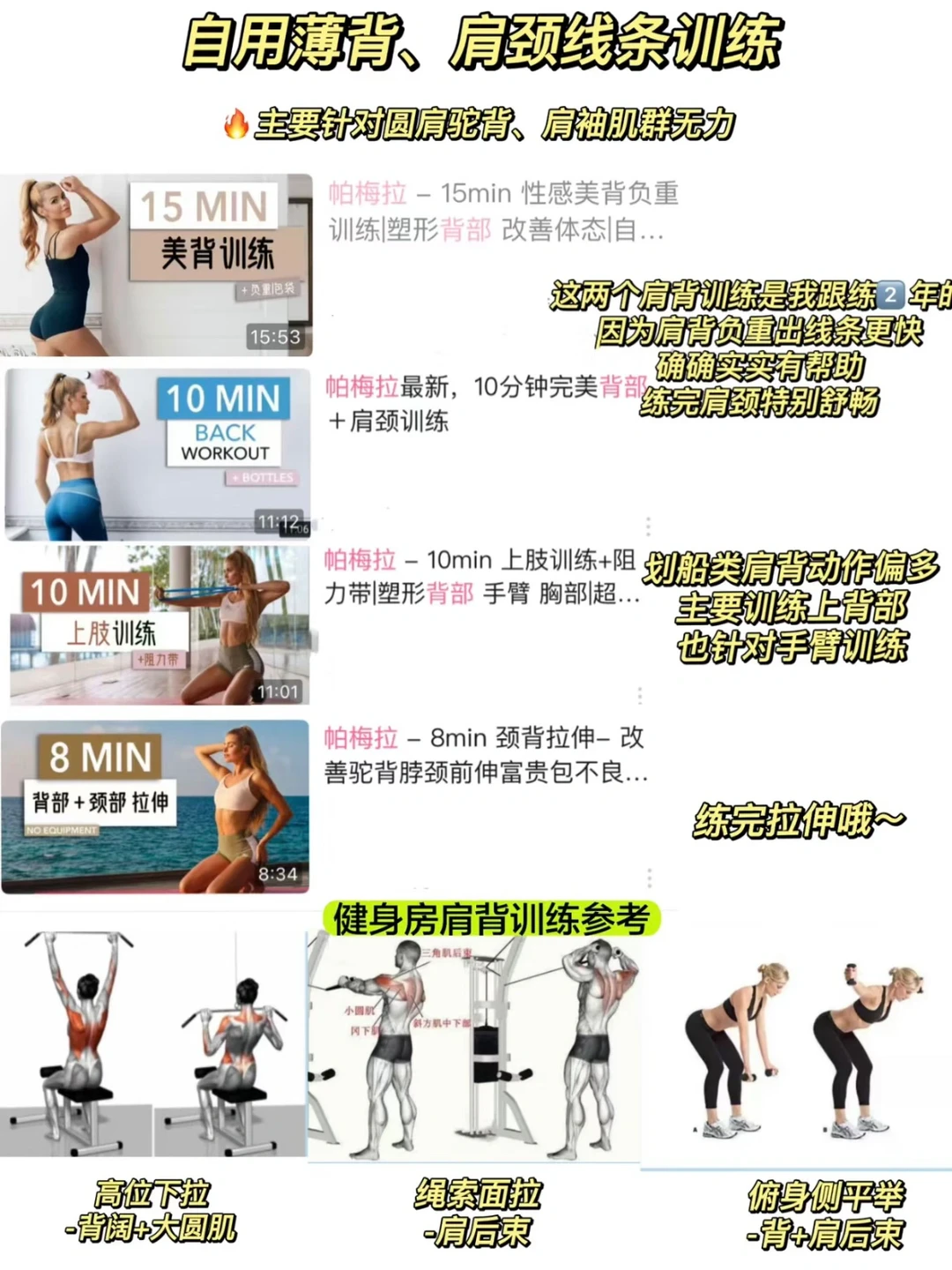 2️⃣练肩多练肩中后束-如侧平举(这些帕姐跟练里也有)+绳索面拉