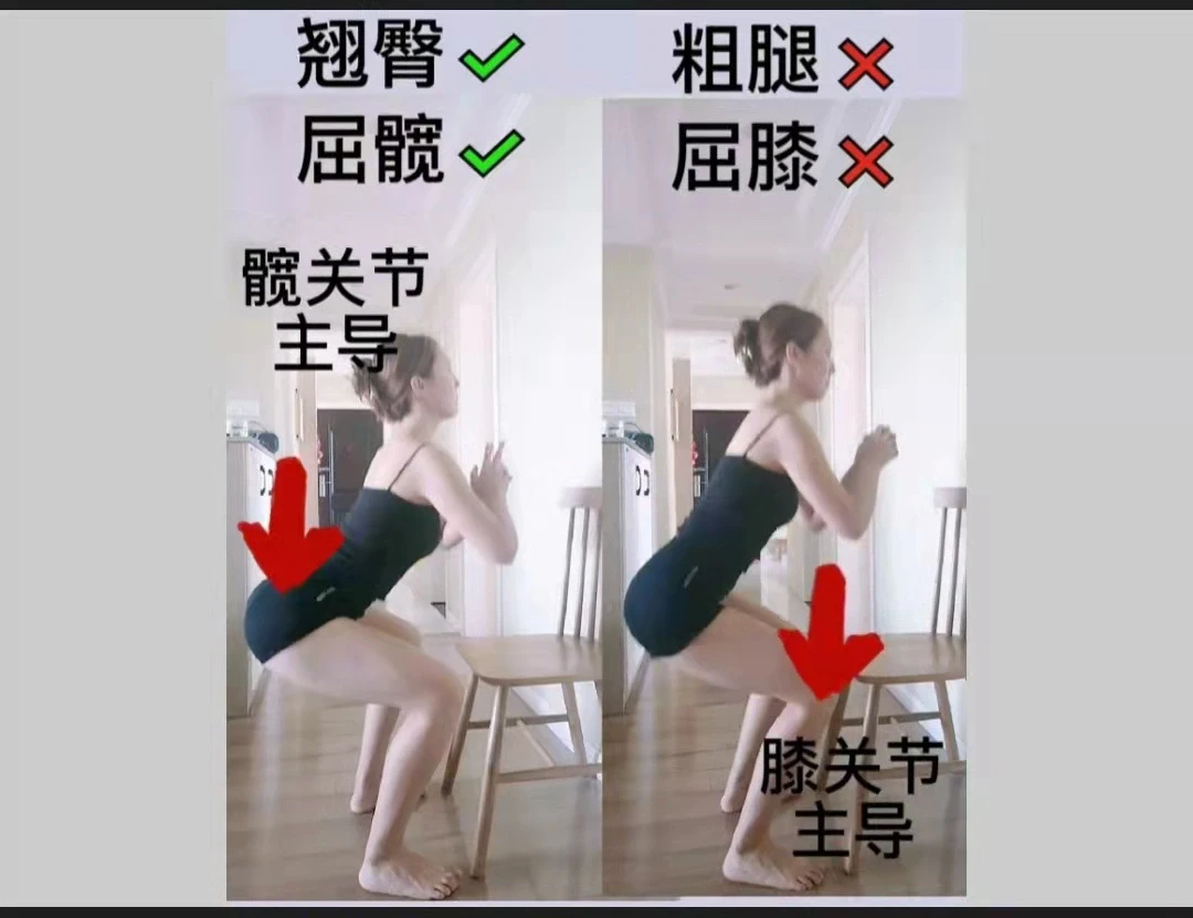 ✅屈髋练的是臀,不屈髋只屈膝练的是腿,想要翘臀不粗腿必须掌握正确的屈髋(见图)