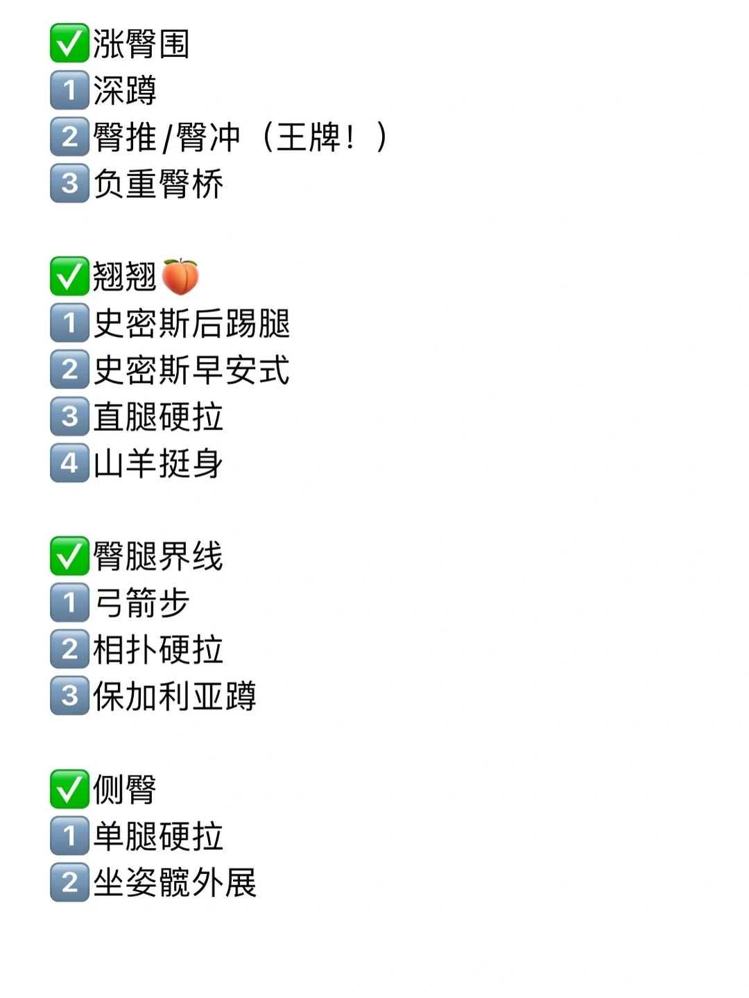 ✅孤立练臀虽然好,复合型动作(如深蹲等)也不能少,因为复合型动作对臀部整体发展好