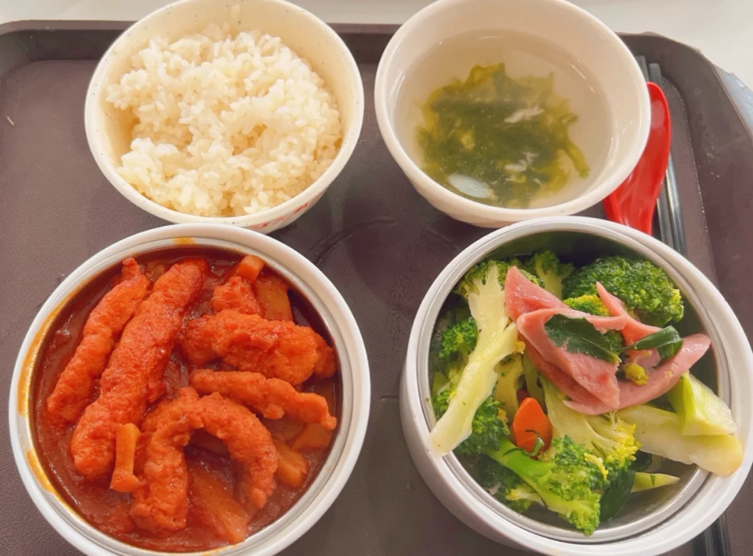 午餐:食堂(两个素菜+一个荤菜+半分🍚)