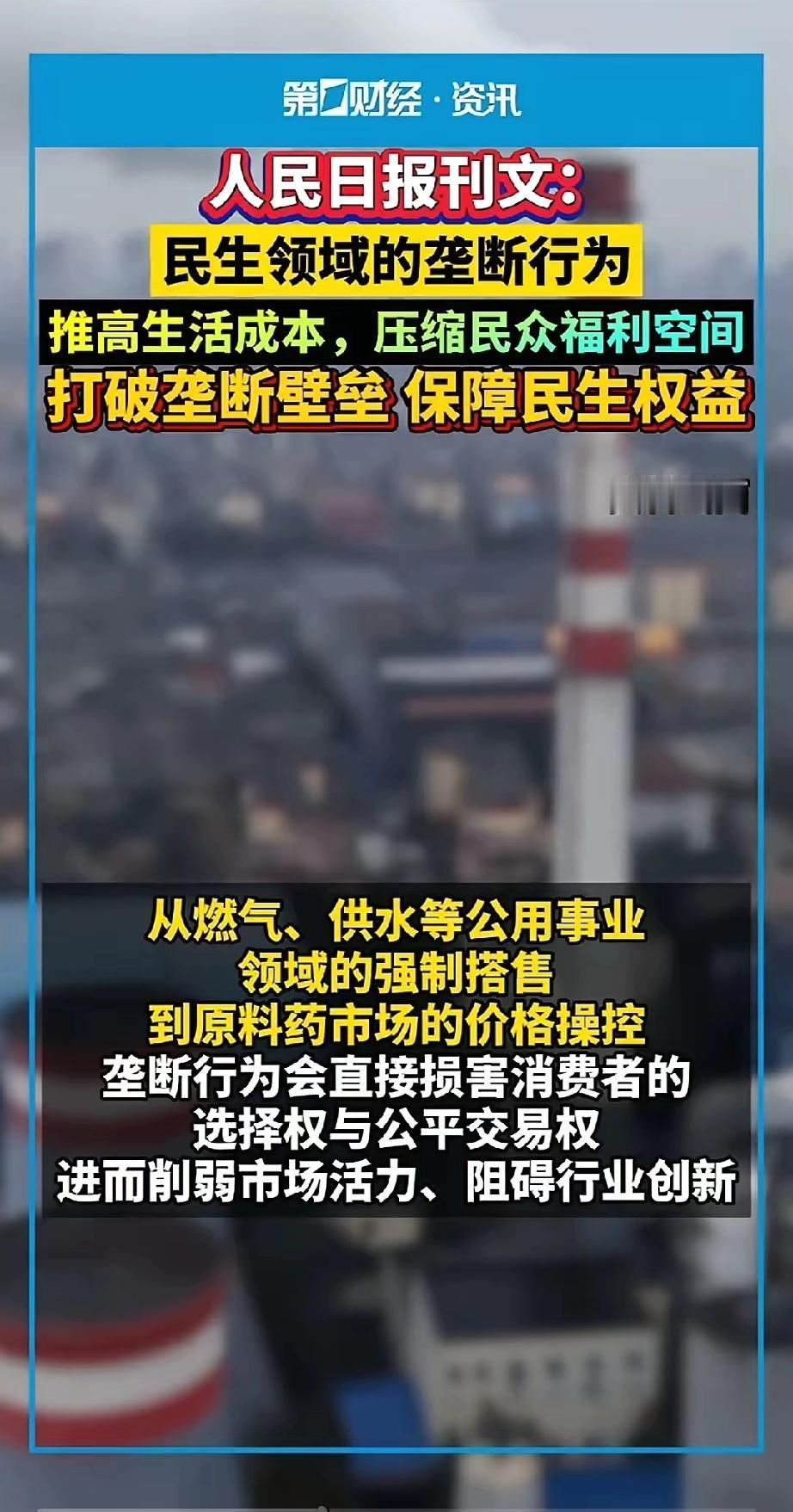 老百姓为什么不敢花钱?人民日报:民生领域的垄断行为… 现在有人说,只要打破民生领域的垄断,老百姓兜里的钱就能活泛起来,这话乍听像天方夜谭,细想却藏着几分实在道理。咱们这日子,衣食住行,哪样离得了那些“大衙门”、“大公司”? 就说看病吃药吧,本是救命的行当,可一旦被几家药厂捏在手里,那价钱,能翻着跟头往上涨。一支药,原本十块八块能拿下的,硬生生炒到成百上千,普通人家砸锅卖铁也填不满这无底洞。这哪儿是做生意,分明是趁火打劫!再瞧瞧水电气暖,那是咱们生活的底子,可偶尔也听说有“搭售”这码事,你不买我指定的东西,这日子就没法过。这就好比旧社会的恶霸,收了保护费,还得逼你买他的蜡烛,岂有此理! 这些垄断的行业高高在上,网约车不知被约谈了几次,都没有怎么改。到司机手里的还不如平台抽的多。上有政策,下有对策。他们想方设法的规避监管。在早之前的社区生鲜团购,通过补贴大战达到垄断目的,在垄断之后涨价。如果是国家紧急叫停。老百姓买个菜也是一样价格起飞。 如今,上头决心打破这些不顾民生的垄断行业。不尤感慨还是社会主义好,绝对不允许资本无序扩张,扰乱民生。 老百姓手里有了余钱,心里有了底气,才敢去下馆子,才敢去买书,才敢去逛逛这大好河山。这消费一活,经济也就跟着转起来了。说到底,打破垄断,不仅仅是经济账,更是人心账。让发展的成果真正惠及咱们每一个人,让每一个普通人都能挺直了腰杆儿过日子,这才是咱们追求的公平与正义,这才是咱们心心念念的好日子! 这日子,终究是咱们自己的,得让咱们自己说了算。