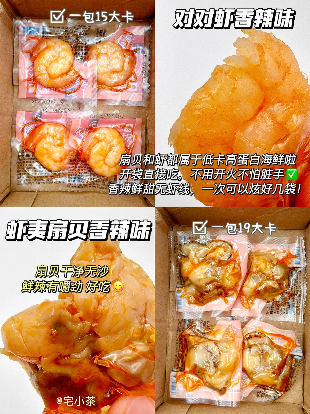 扇贝和虾都属于低卡高蛋白海鲜啦,开袋直接吃,不用开火不怕脏手。
