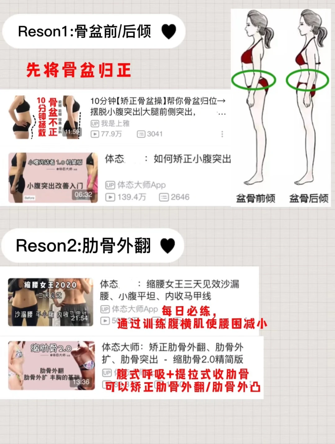 承接上文,肋骨外翻以及骨盆不在中立位的姐妹!一定要先矫正体态再去健身!