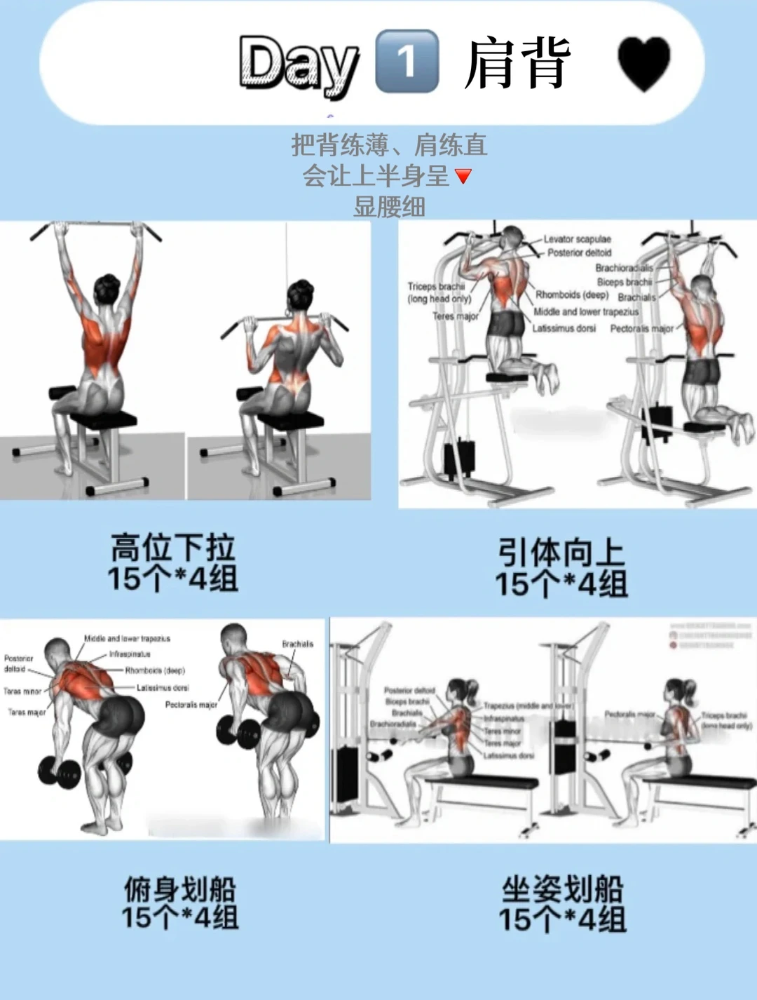 ✅把背练宽、肩练直,你的上半身会呈现一个倒三角;