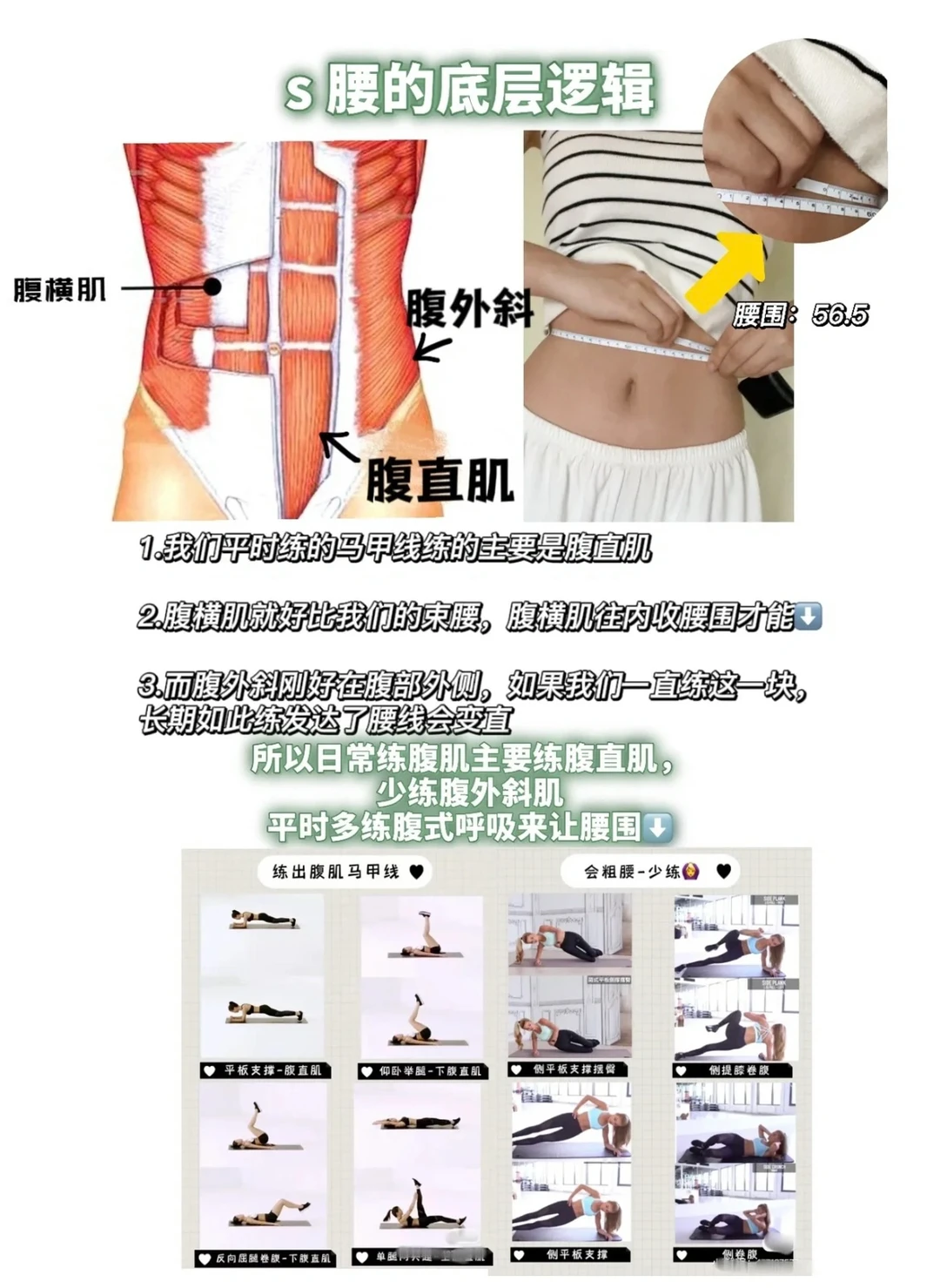 ✅腹式呼吸(现在我几乎每天一有空就做,因为通过收腹横肌可以使腰围减小)