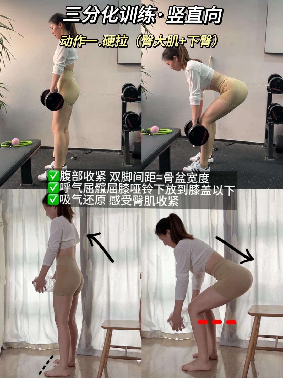 🔹竖直类一般包括:深蹲、硬拉、箭步蹲等,针对纵向臀肌分布,所以一般采取中高重量