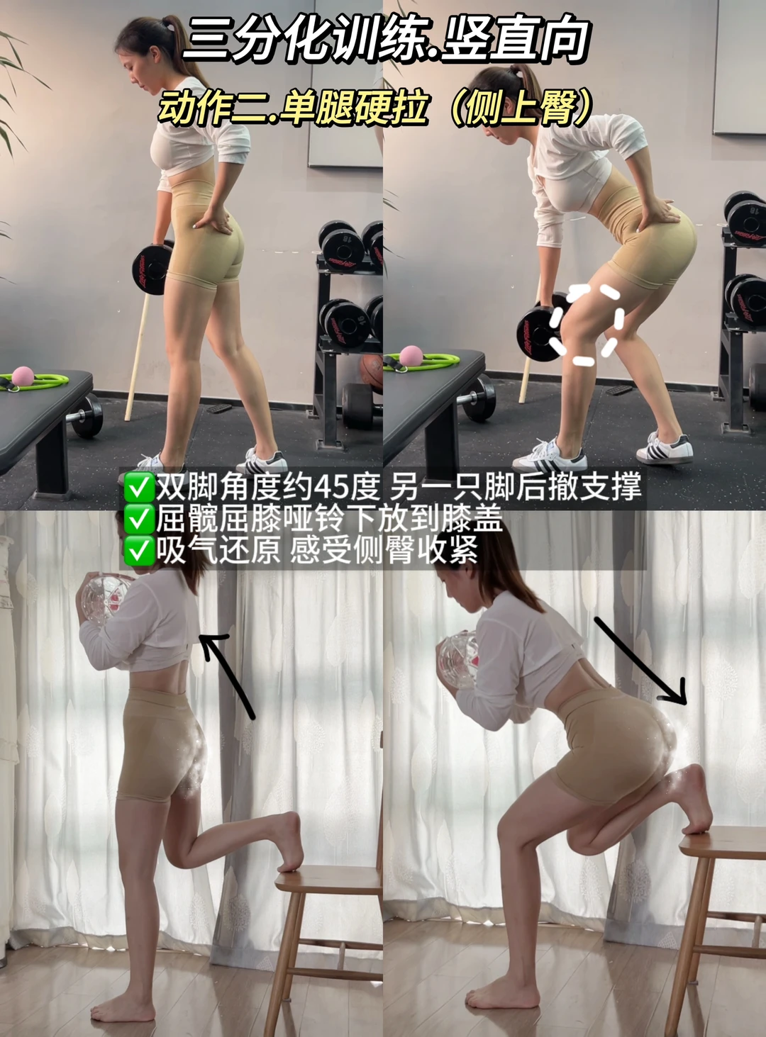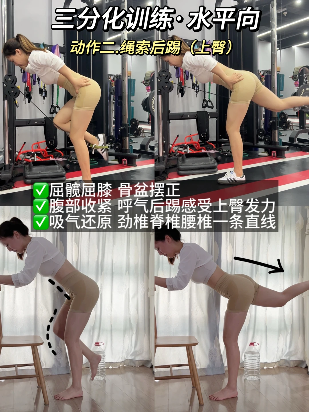 从之前方形臀,到后面自己日复一日努力训练下,发现臀型可以通过锻炼变好看同时,练出来的腰臀比也让我穿衣加分~