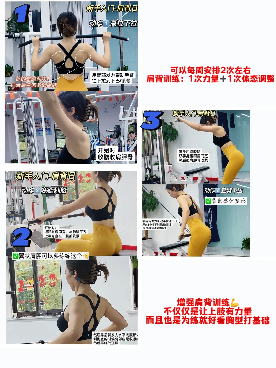 🔹一周安排2次肩背训练-针对圆肩驼背(特别是扣肩+圆肩的姐妹,侧面看显得背很驼,正面看扣肩还会把副乳给挤出来