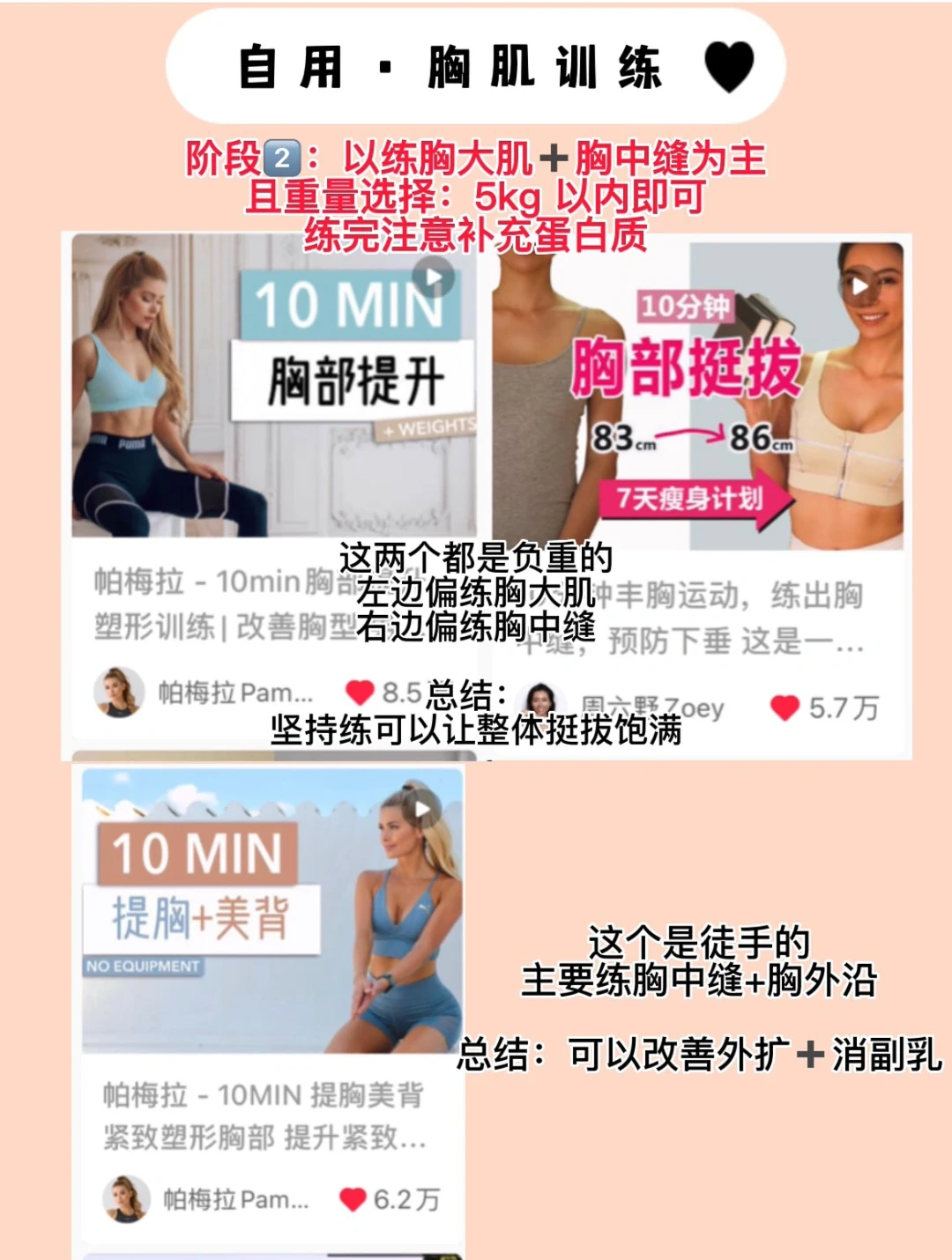 💖所以,适合咱女生的练胸思路就是:发展胸大肌+胸中缝训练