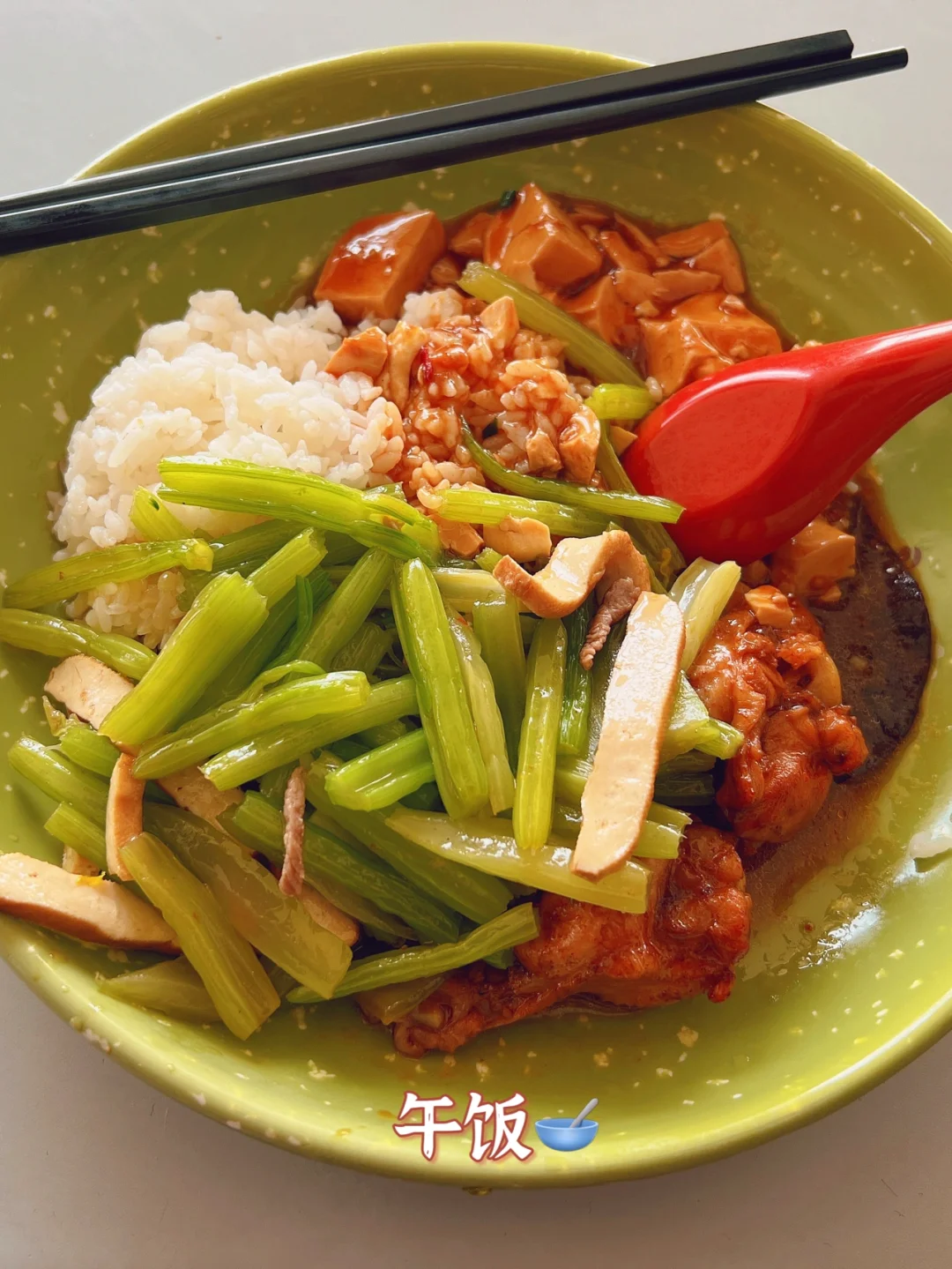 午餐:食堂的套餐饭(两个🍗+两个素菜+一份🍚)