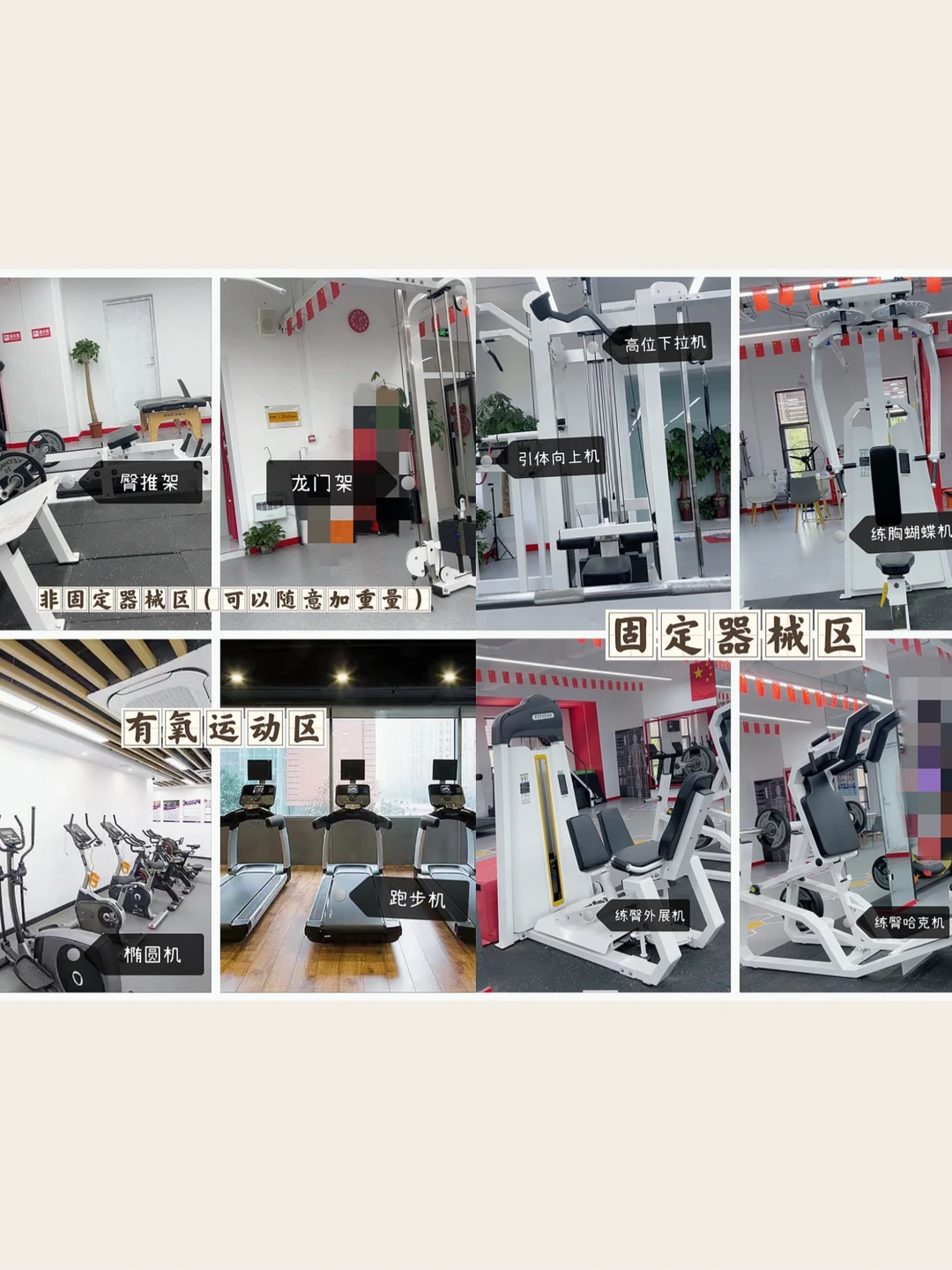 2️⃣固定器械区(史密斯机,哈克机,划船器,蝴蝶机等)