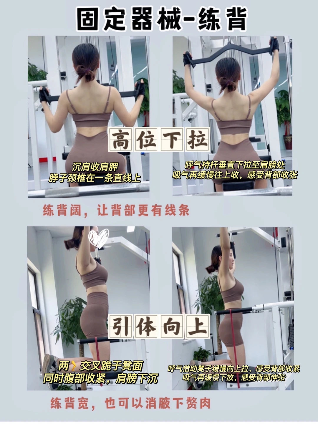 2️⃣后背肉肉多:多练背阔肌(如高位下拉,引体向上)