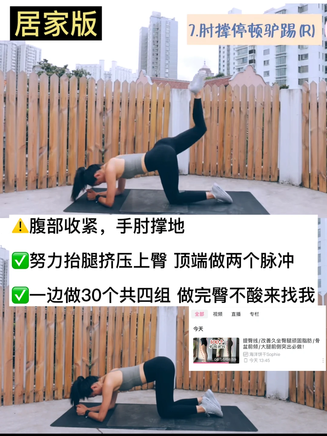 目标2️⃣:我只想臀部塑形,让臀型好看不追求臀围—这时候你可以在家跟练(参考图5-6)或者买哑铃弹力伸在家练就🉑️。