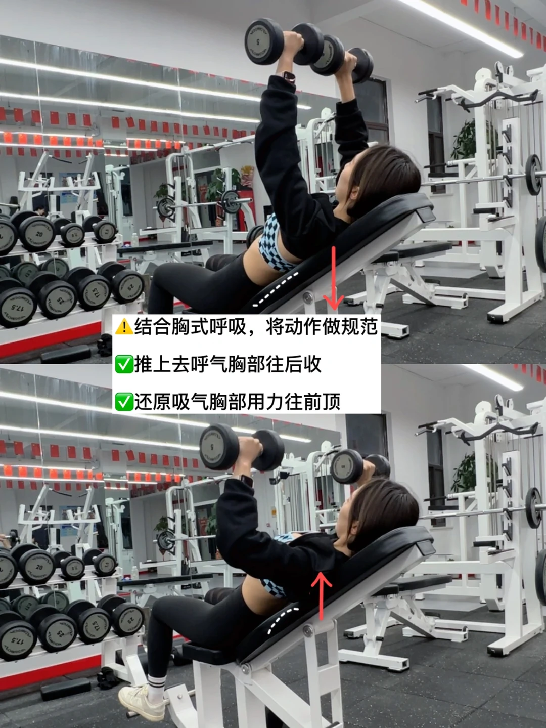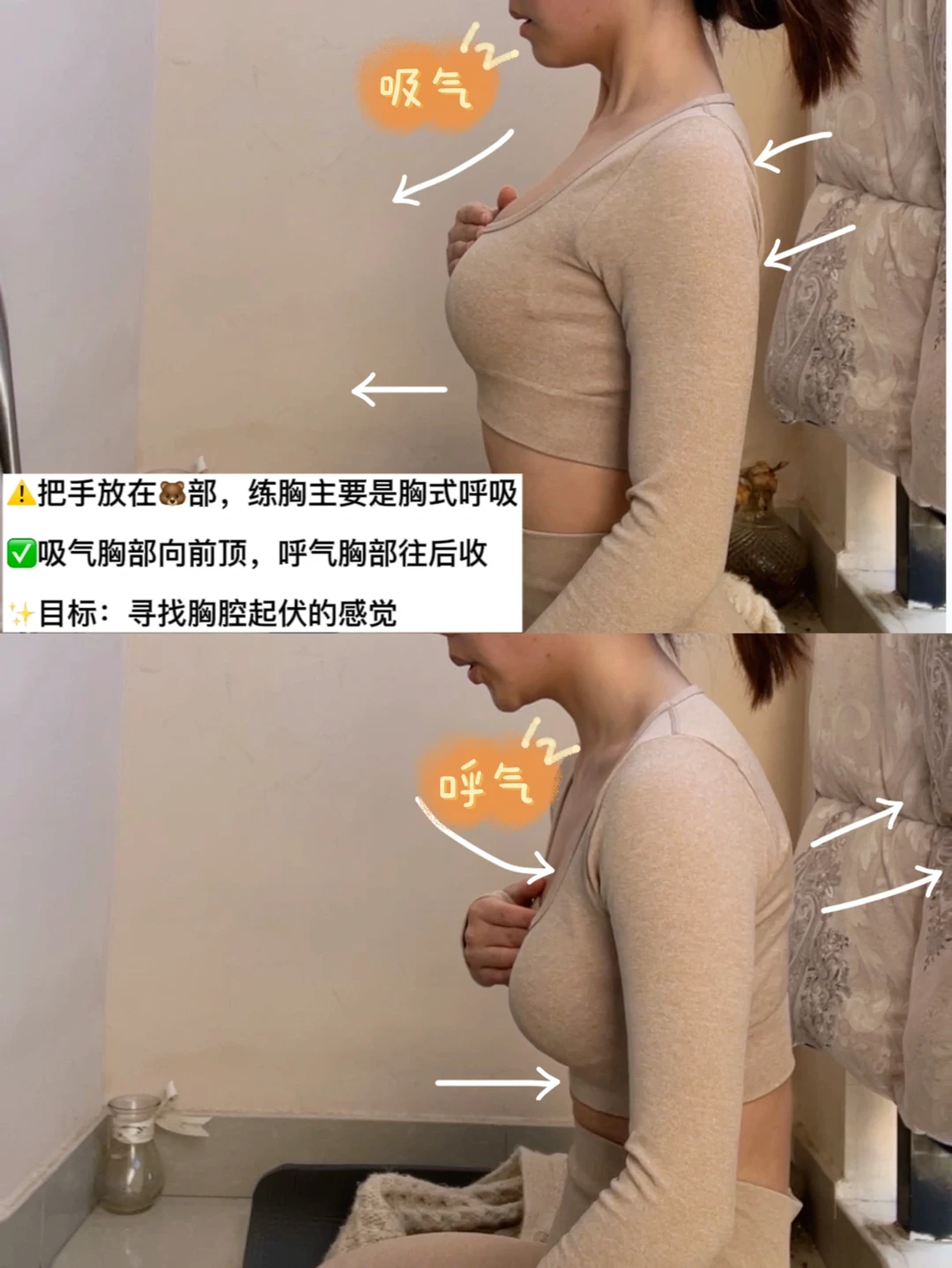 2️⃣找不到胸椎发力感:可以先做几组胸式呼吸-胸部大幅度的起伏(这时候明显感受胸部发力比较多,然后记住这个感觉)