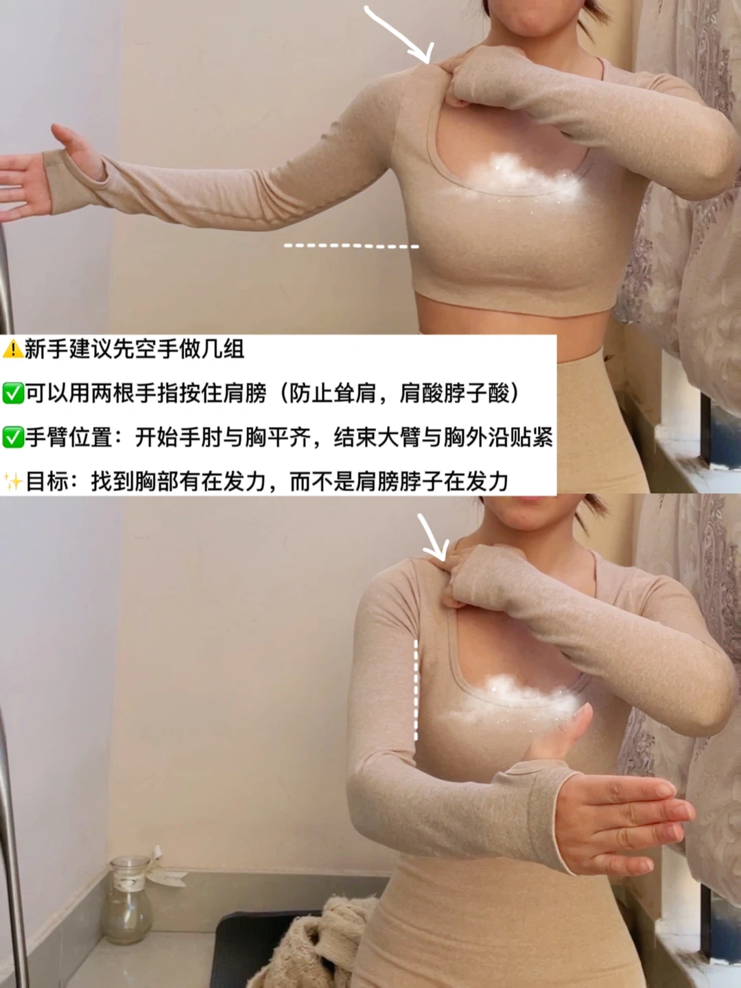 结合1️⃣&2️⃣配合相应的练胸动作:一定是胸部发力带动手臂,而不是手臂或者斜方肌主导发力!!