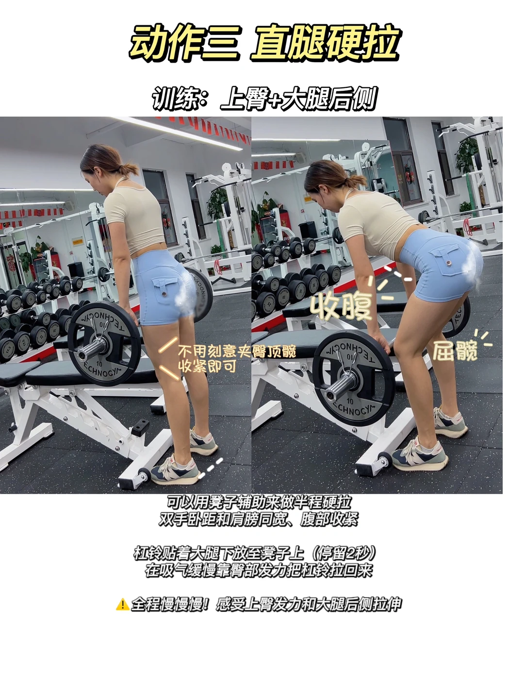 ✅上臀:直腿硬拉,T杆硬拉,俯卧后蹬