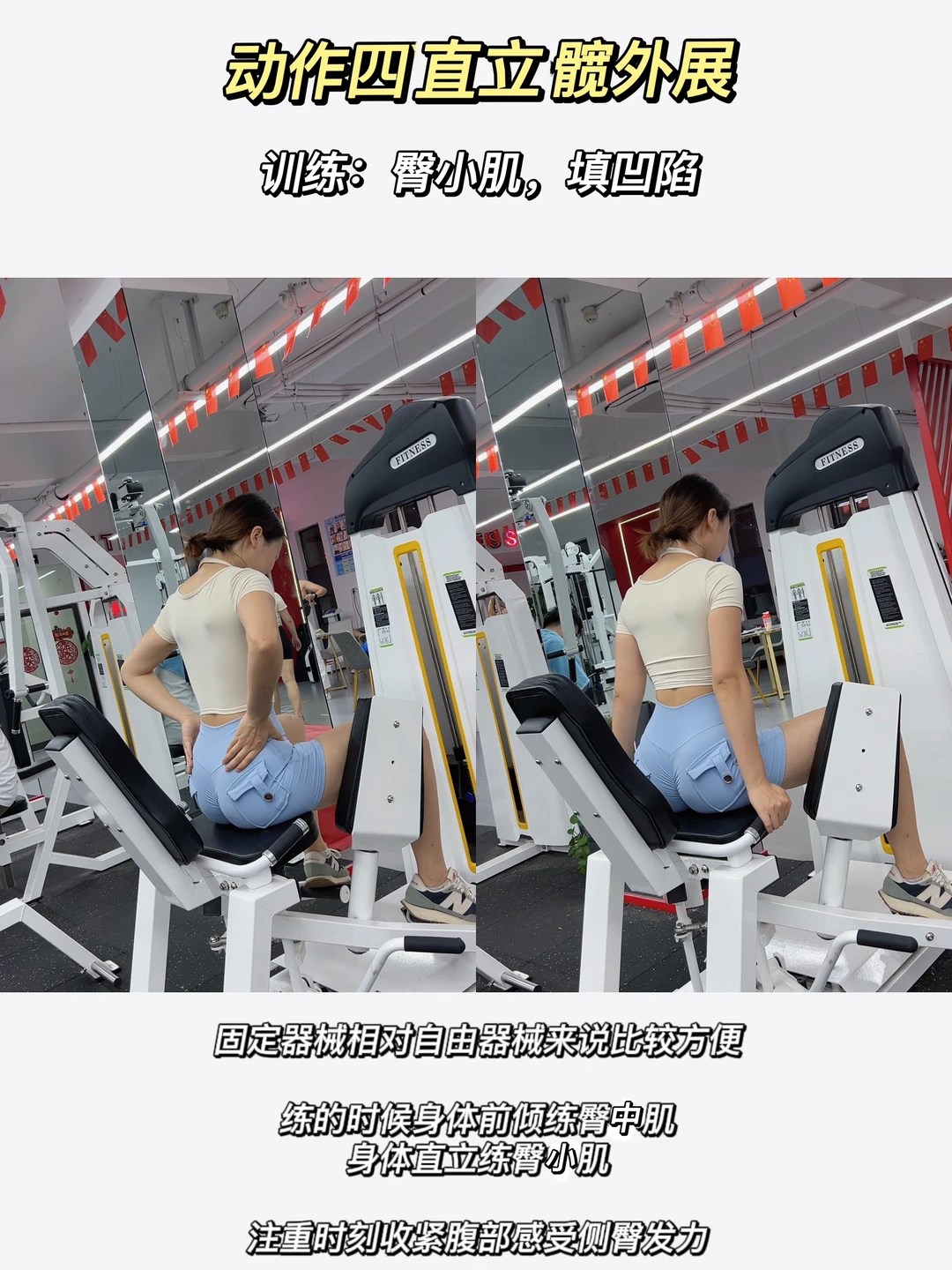 ✅臀小肌:直立器械髋外展、俯身侧抬腿