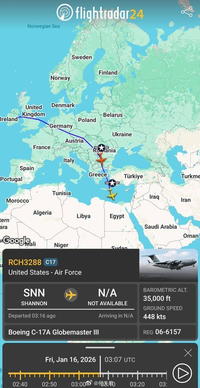 四架美国空军 C-17A 货运飞机正飞往迪戈加西亚空军基地。来自拉姆斯坦空军基地的 3 枚导弹以及来自特拉维斯空军基地的 1 枚导弹。海外新鲜事何天恩