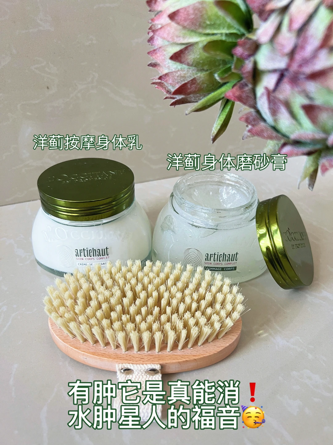我近期发现了一款超好用的按摩cp-欧舒丹家的新品洋蓟身体磨砂膏&按摩身体乳