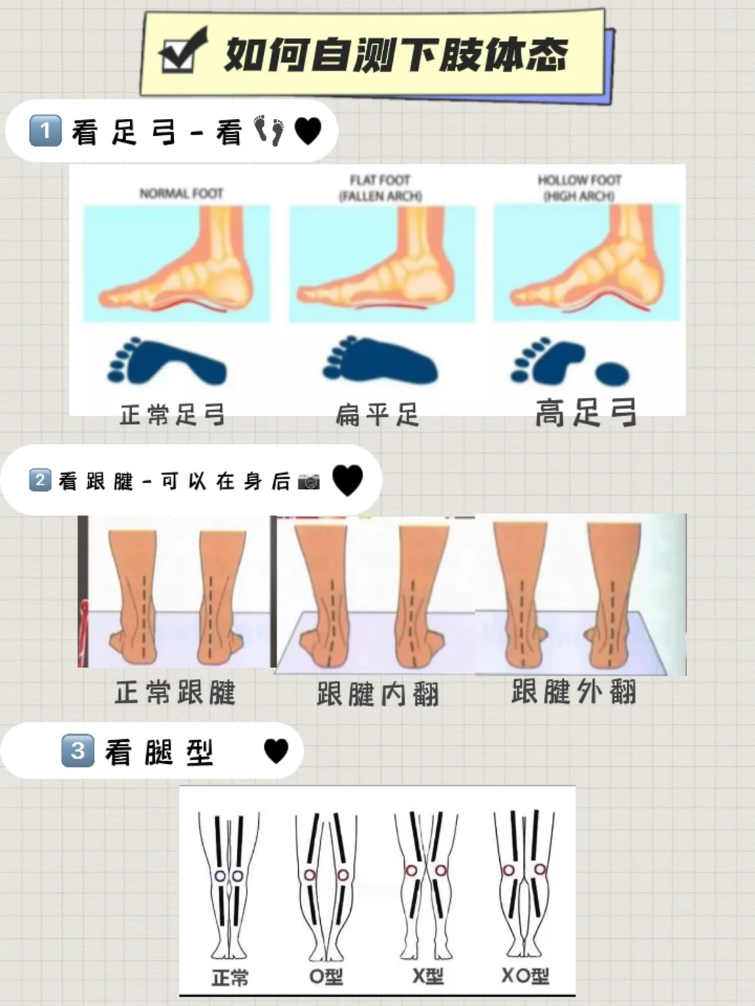 【自测是否:足弓,跟腱,腿型不正】